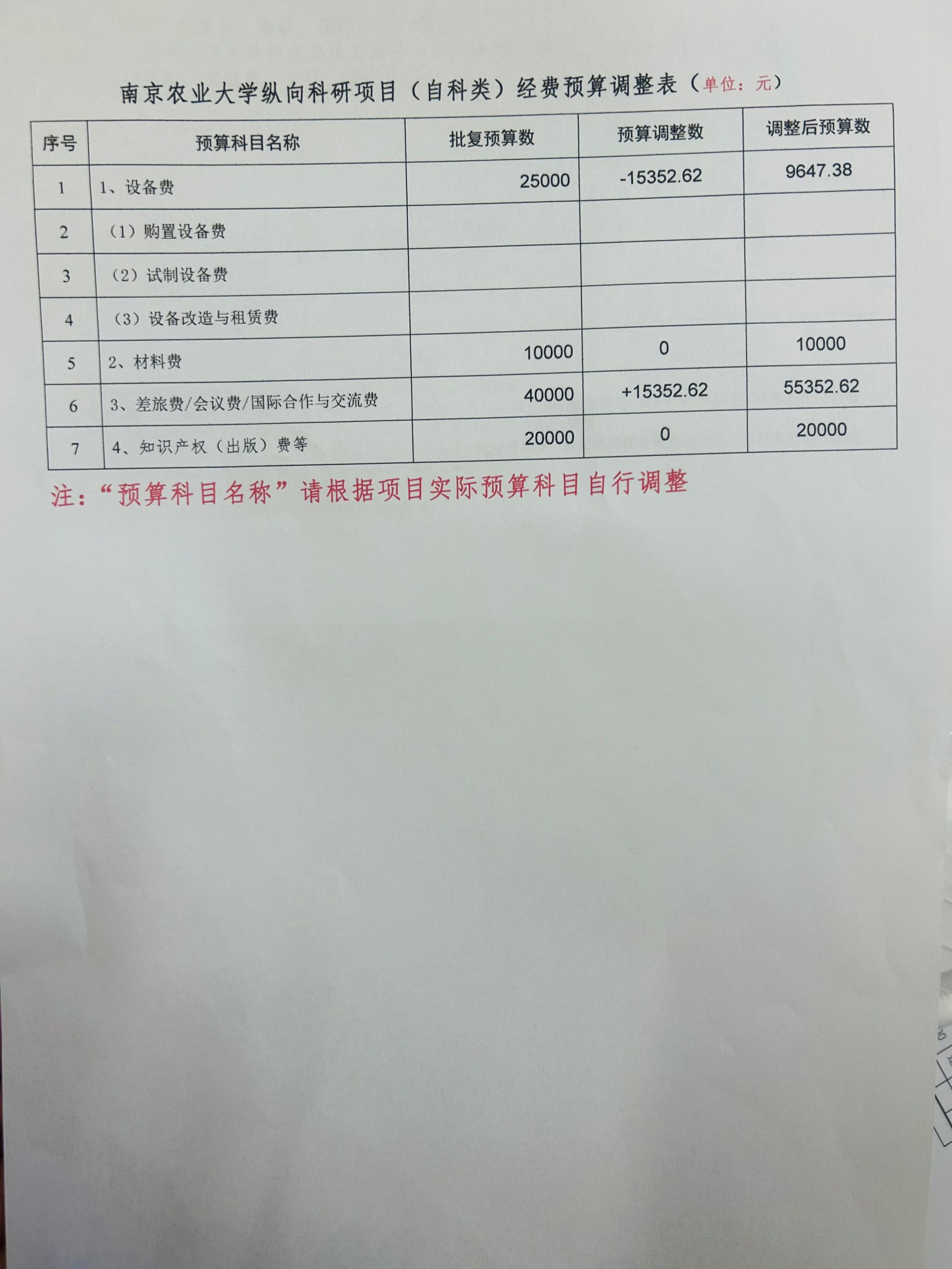 南京农业大学纵向科研项目(自科)预算调整(赌博网 )公示