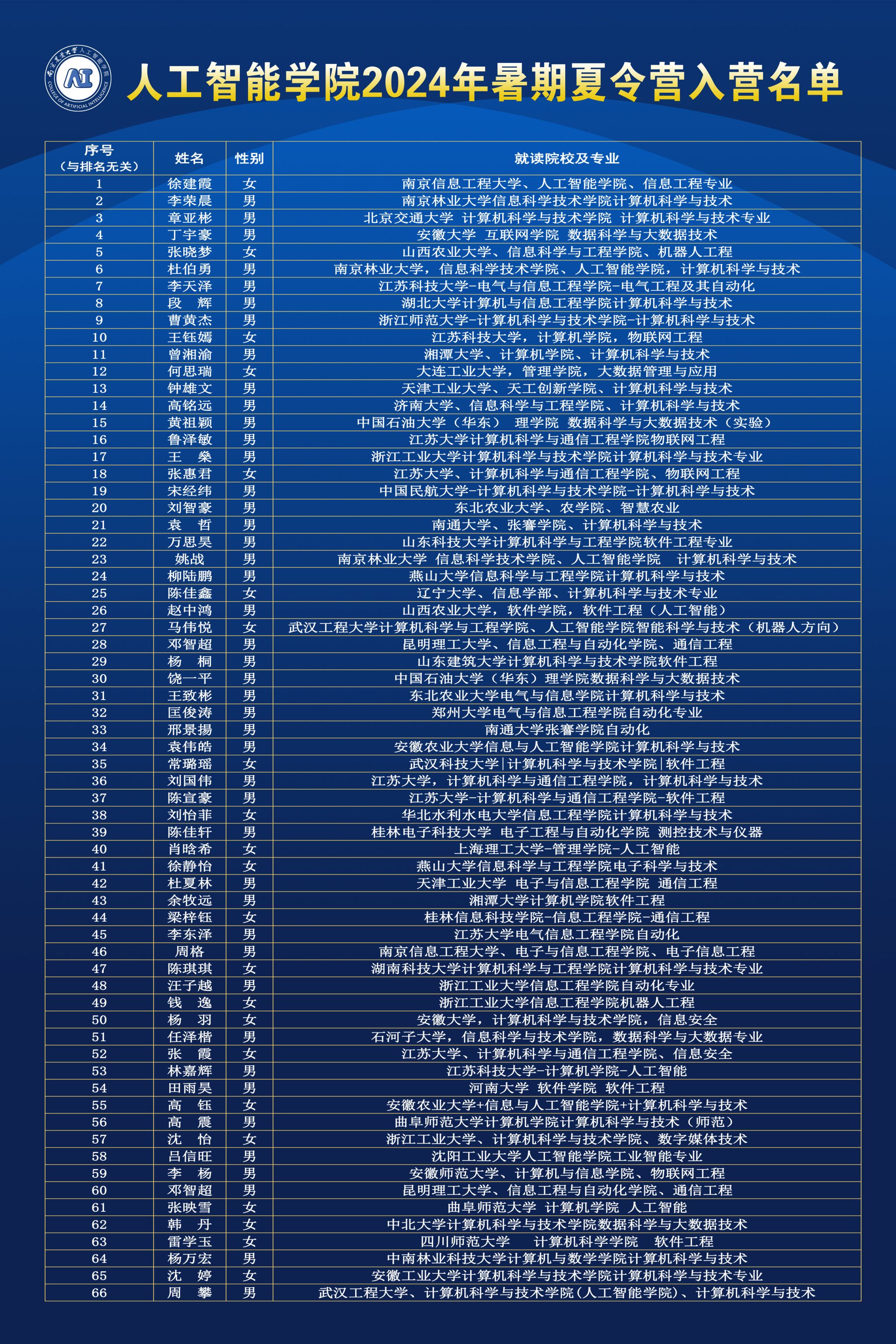 现将2024年南京农业大学赌博网 优秀大学生暑期夏令营入营名单公示如下: