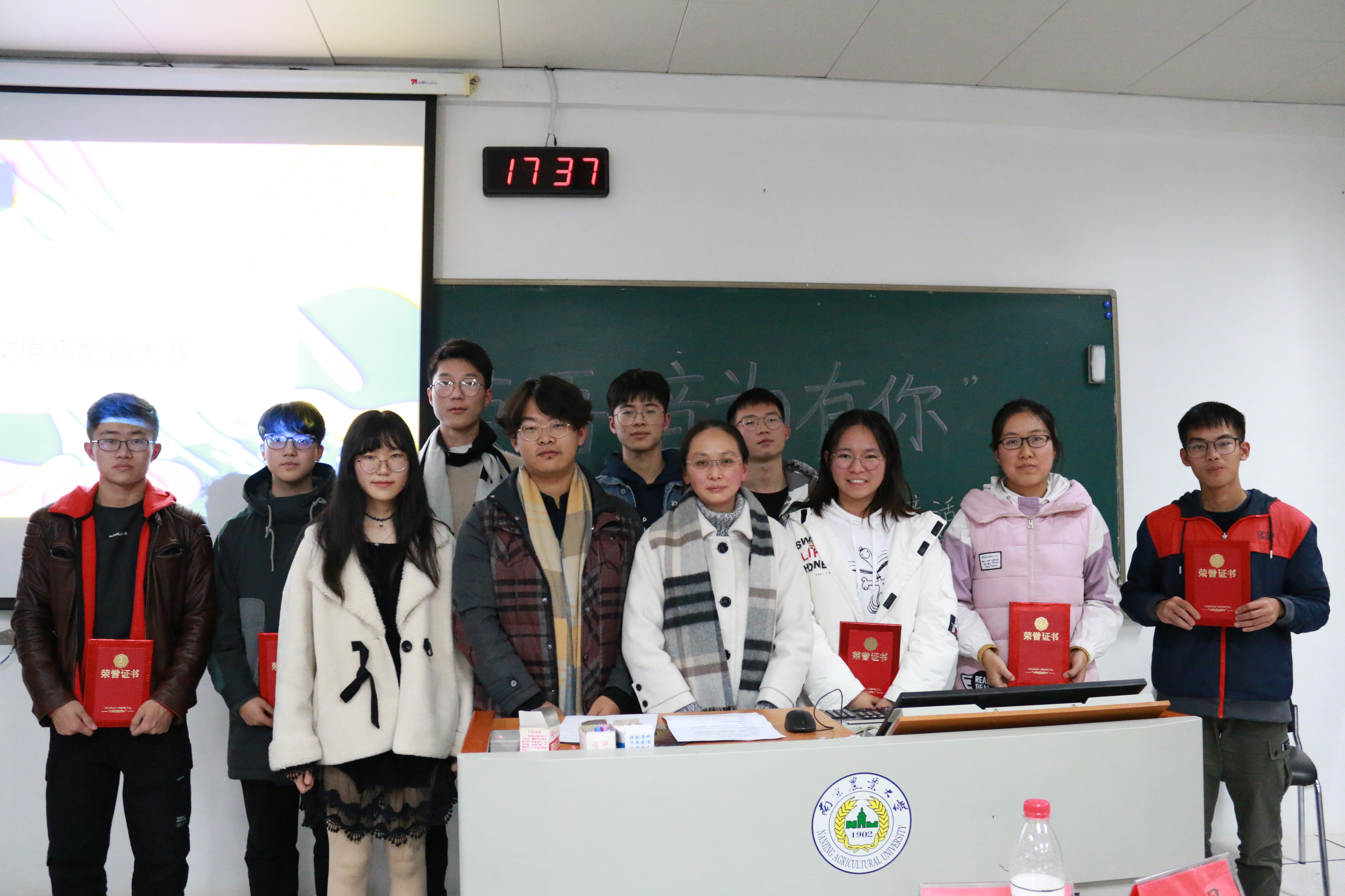 27日下午15:00,第一轮比赛开始。选手们逐一展现了自己的作品,既有惟妙惟肖的《皮卡丘》,又有语言犀利的《后妈茶话会》,还有经典电影《肖申克的救赎》等,充分展示了选手的语言功底。表演过后,英语老师姜静静对每位选手进行了细致的点评与专业指导。随后第二轮比赛开始,八位选手两两一组进行配音,过程中选手们气场全开,配合默契。最后高语涵获得一等奖,张瑞宁、童瑞楠获得二等奖,龚治会麒、向柯荣、张明慧获得三等奖,陈钇滔、徐浩展获得优秀奖。