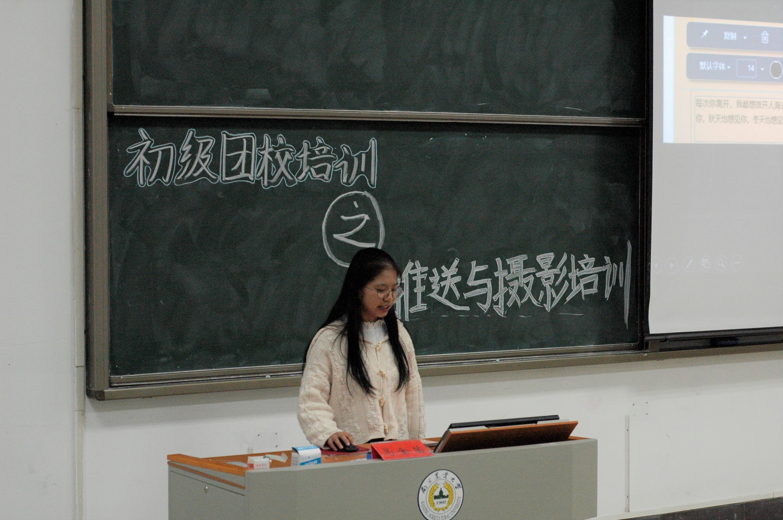 全媒体中心主任李启源、全媒体中心网络部副部长马金苗出席本次培训,监察部刘雅彬主持。首先,马金苗从推送内容的分类、活动预告、活动总结、配图技巧、排版工具、排版格式等方面进行了推送编辑培训。随后进行摄影培训,李启源详细讲解了相机使用注意事项、摄影构图技巧以及优秀案例。
