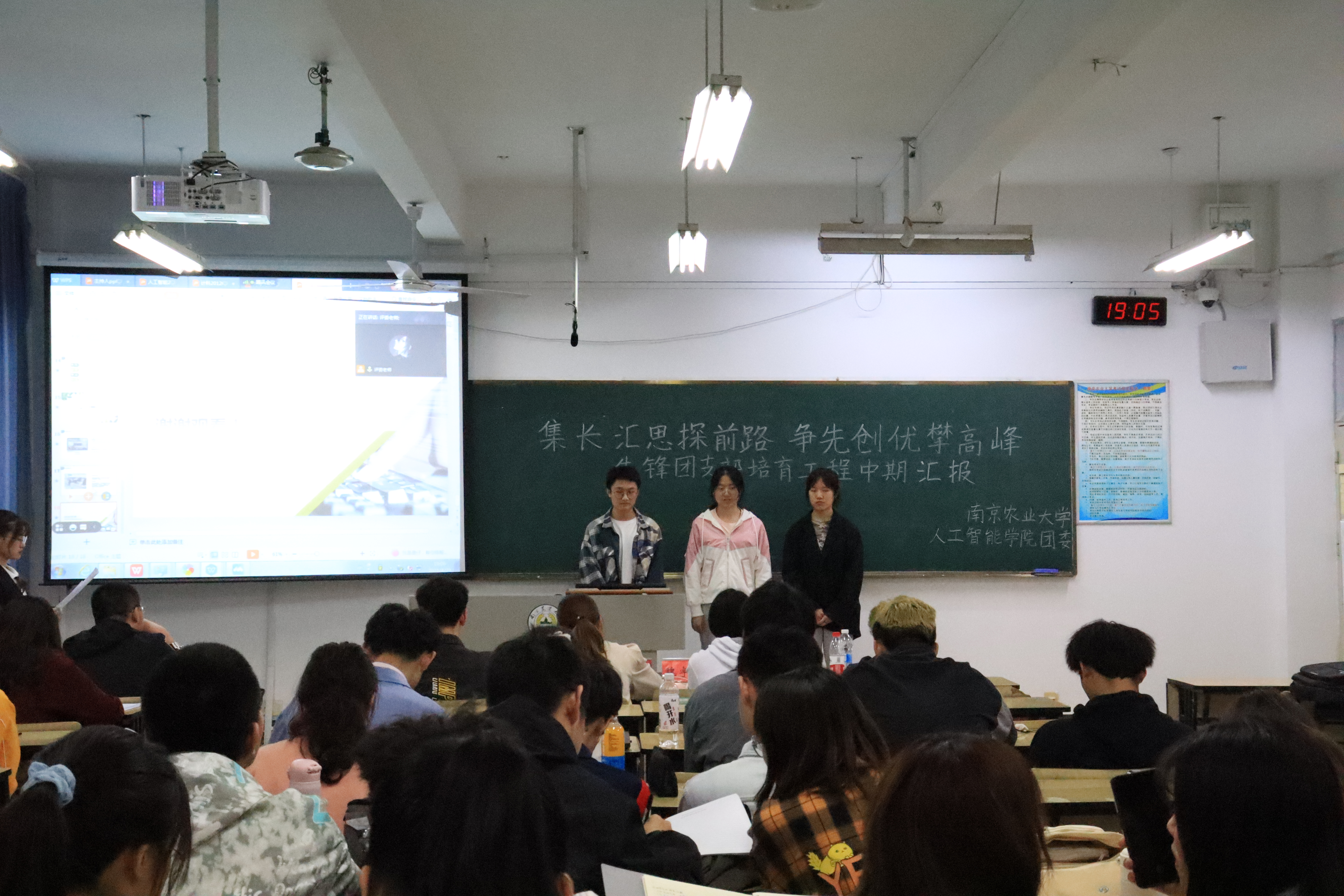 本科生辅导员魏宇宁、侯硕、邬晓倩及学生团委副书记王禹博出席本次汇报,肖阳担任主持人。