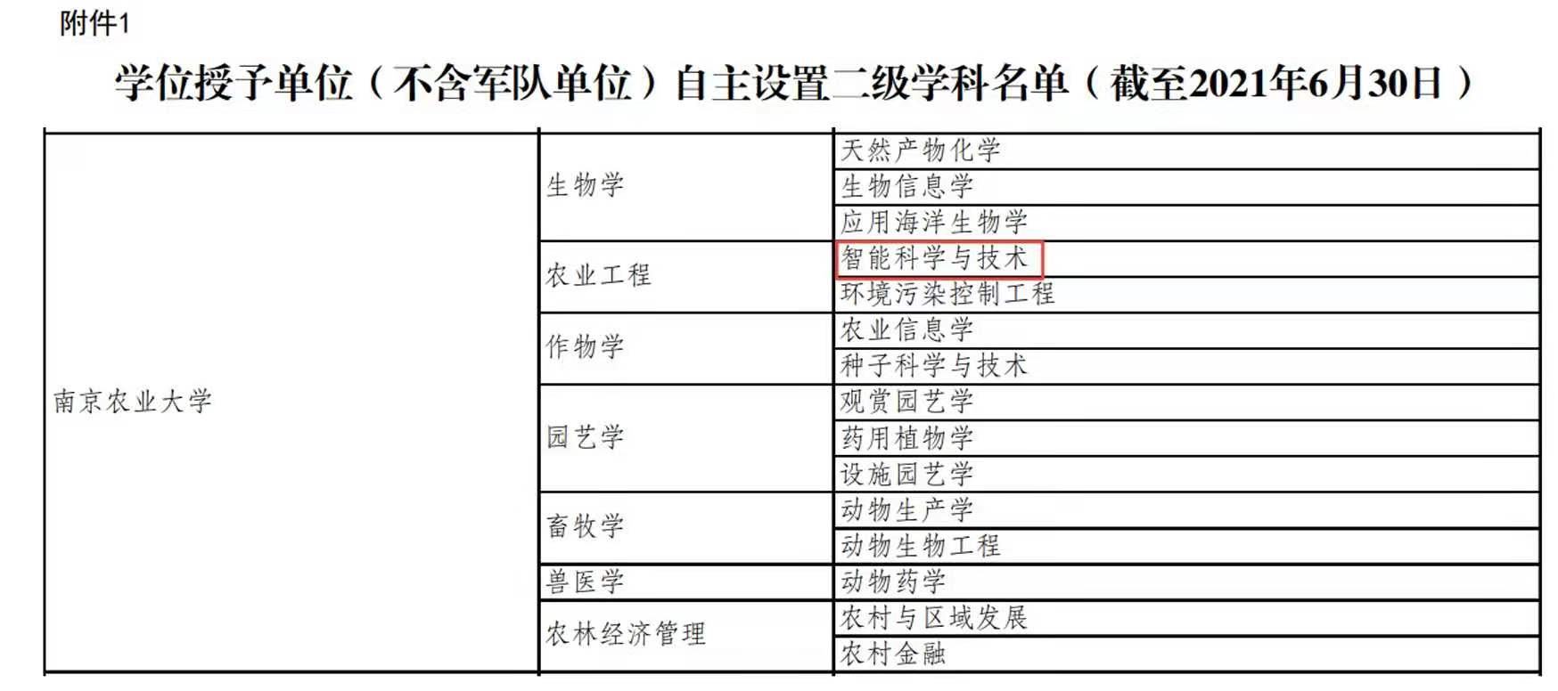近日,教育部下发《学位授予单位(不含军队单位)自主设置二级学科和交叉学科名单》,公布了2021年度上半年普通高等学校自主设置二级学科备案和审批结果。南京农业大学在农业工程一级学科下自主设置的“智能科学与技术”二级学科正式获批设立。