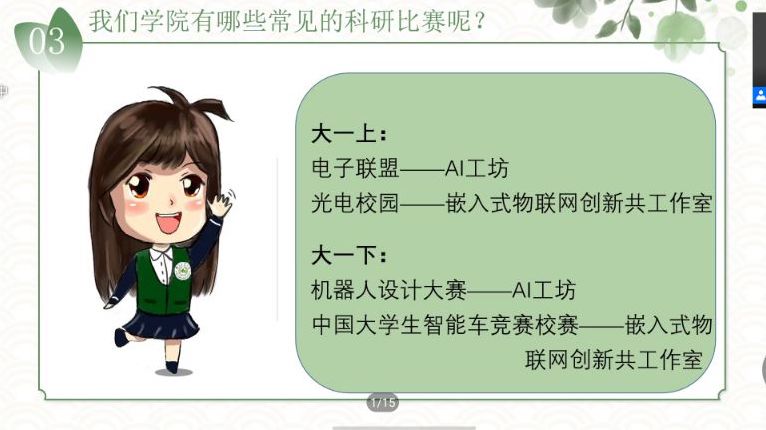 团委于9月19日下午14:00成功举办“齐聚南农,因‘AI’相遇”新老生“云”交流会。交流会分两个会场,一场面向电子信息大类新生,另一场面向计科、大数据、人工智能专业新生。