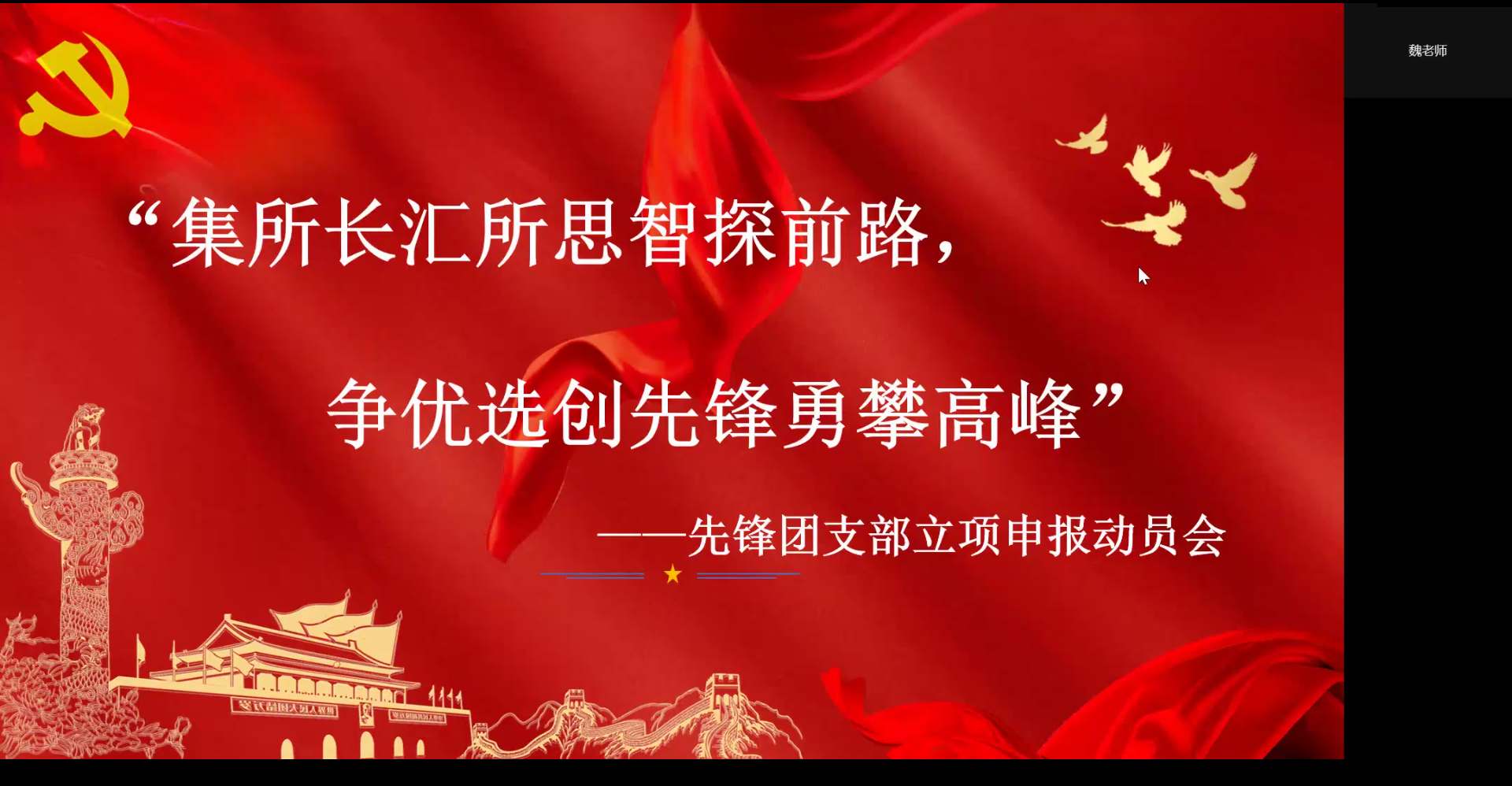 团委线上开展第十批“先锋支部培育工程”立项动员会。辅导员魏宇宁、各年级团支书及团委组织部全体人员参会。