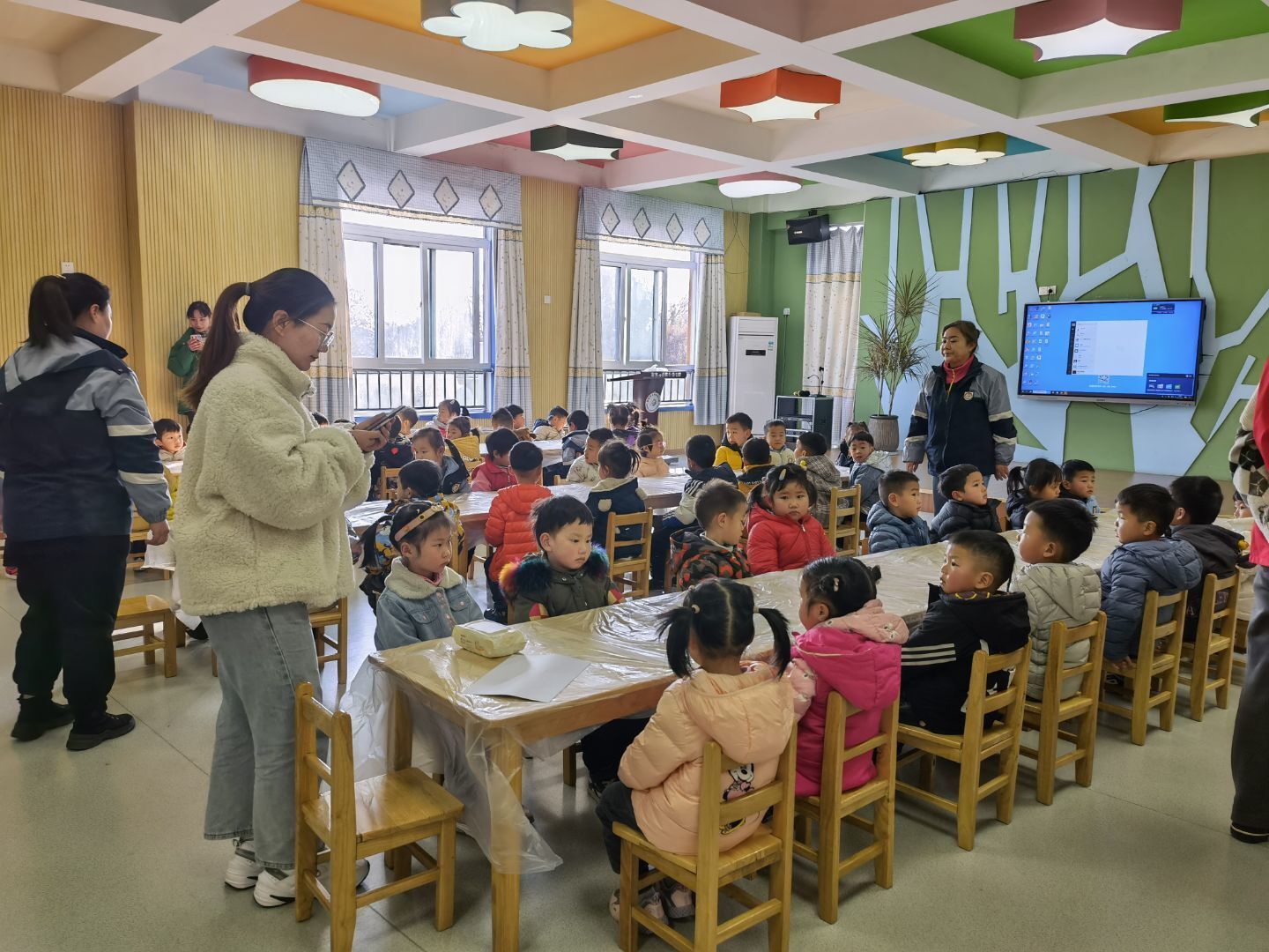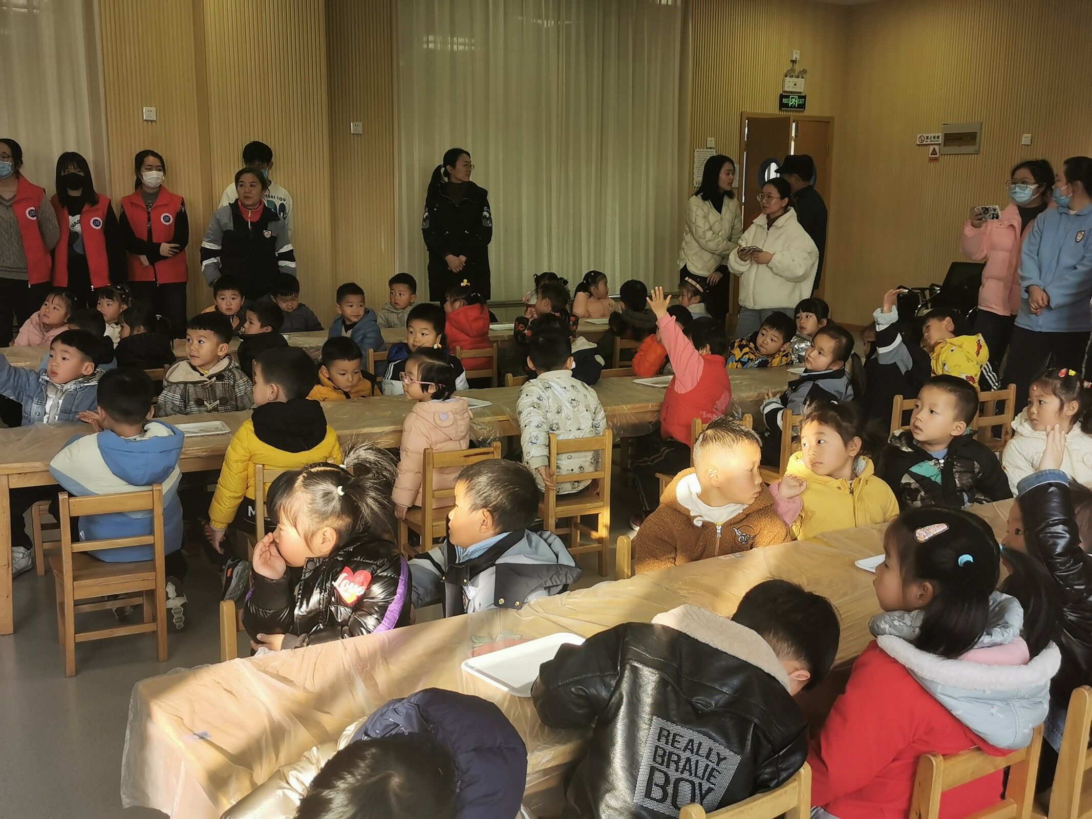 活动开始,志愿者们先向小朋友们介绍了冬至日的来历与习俗,小朋友们端坐着认真的听。随后,志愿者们在提问中发现,大部分小朋友都记住了刚刚志愿者的讲解。接着进入体验环节,小朋友们迫不及待的开始搓汤圆。在志愿者们的帮助下,小朋友们都学会了如何搓汤圆。活动最后,志愿者们为表现优秀的小朋友们分发了奖品,并与幼儿园的小朋友们进行合照,至此幼儿园冬至日活动圆满结束。