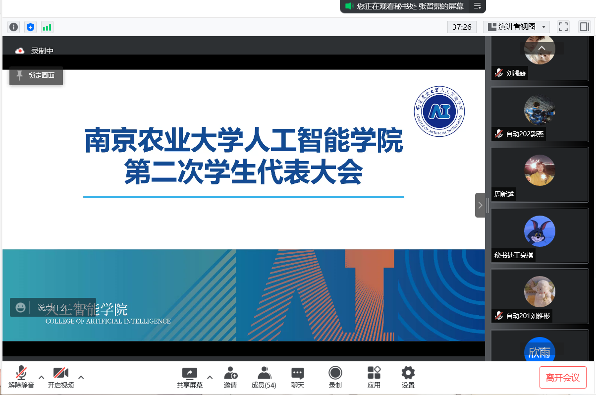 学生代表委员选举办法,选举产生参加南京农业大学第二十二次学生代表大会的代表:李梓萌、陈雨昕、王莹莹、李志远、李东基、施佳磊、王圣元、郝冠毅、邢寻升、康魁元、戴佳琪、刘涛、施芸芸、张欣月。接着,与会人员听取提案审议报告。在全体与会人员合唱校歌后,会议圆满结束。