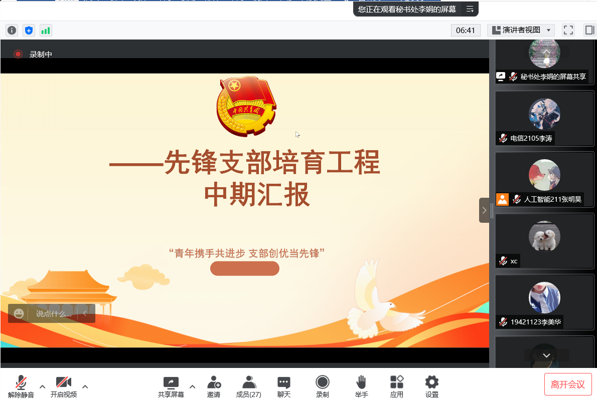 先锋支部培养工程中期汇报在线上举行,赌博网