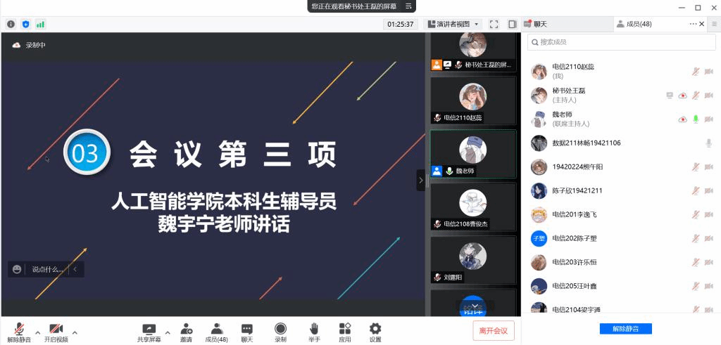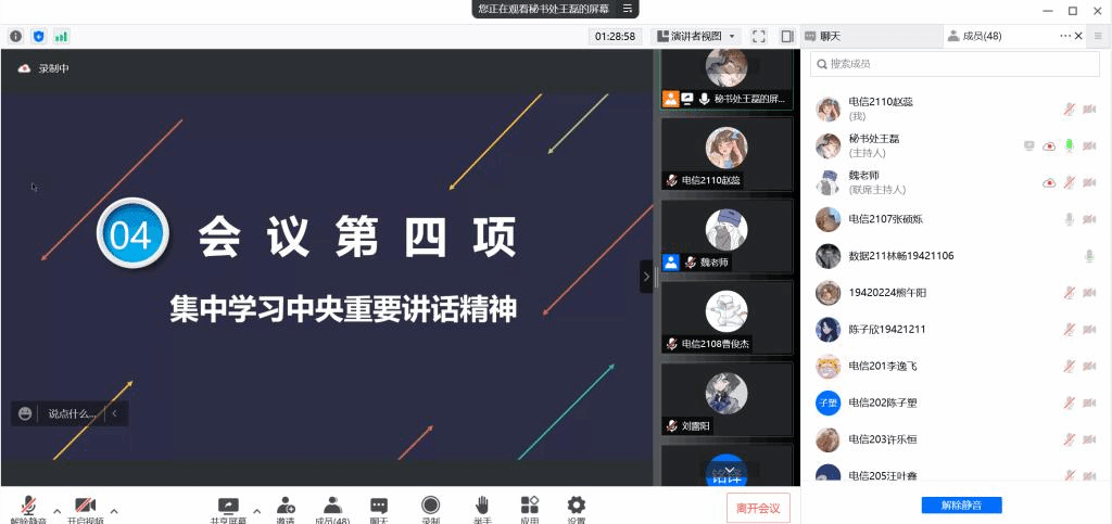 紧接着,参会同学一起集中学习了中央重要讲话精神。