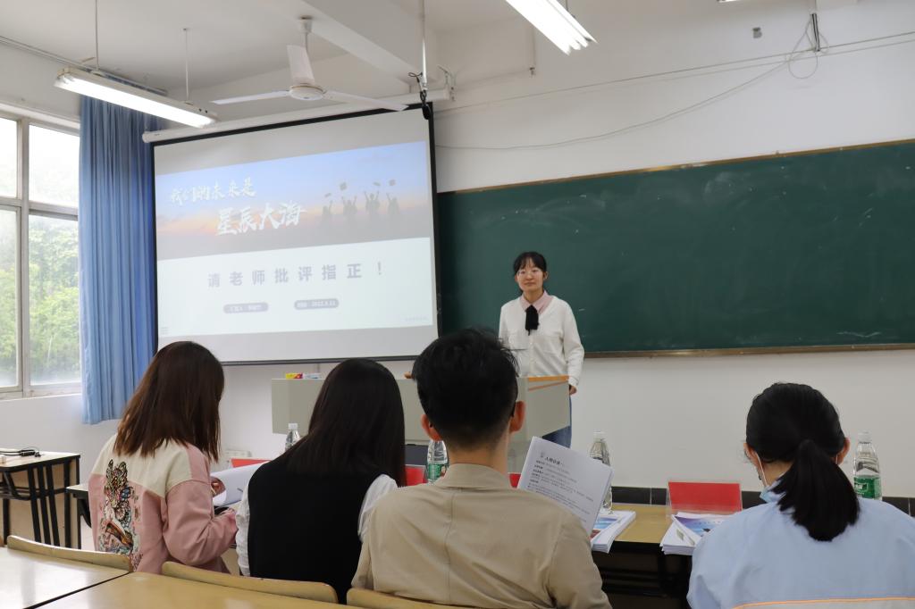 比赛由两个环节组成。第一环节,评委首先浏览了选手的规划书并对其打分。接着,选手就自己的职业生涯规划进行3分钟的PPT演讲展示,向评委及观众阐述自己的职业认知、职业路径等内容。此环节中,选手们选材上紧扣主题,各有特色;表达上言辞流利,自信不疑,清晰明确地展示了自我认知,树立了职业目标,讲述了未来规划。在第二环节中,评委老师对选手提问,考察选手们对于初入职场的各种事件的应对能力,选手需用凝练的语言进行回答。面对评委老师的问题,选手们从容不迫,冷静分析,从自己的专业及未来的趋势等方面进行回答。随后,四位评委从仪容仪表、PPT展示、选手表现、临场回答四个不同方面对选手们进行了全面点评,指出选手们在演讲中的优点和不足。最后,评委打分,工作人员统计得分并公布比赛结果。陈正卿、陈雨昕、王圣元分别获得前三名的好成绩。