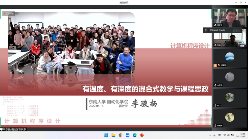 李骏扬副教授开展了“有温度、有深度的混合式教学与思政设计”专题讲座,会议由刘杨副院长主持,多名教师线上参与分享交流。