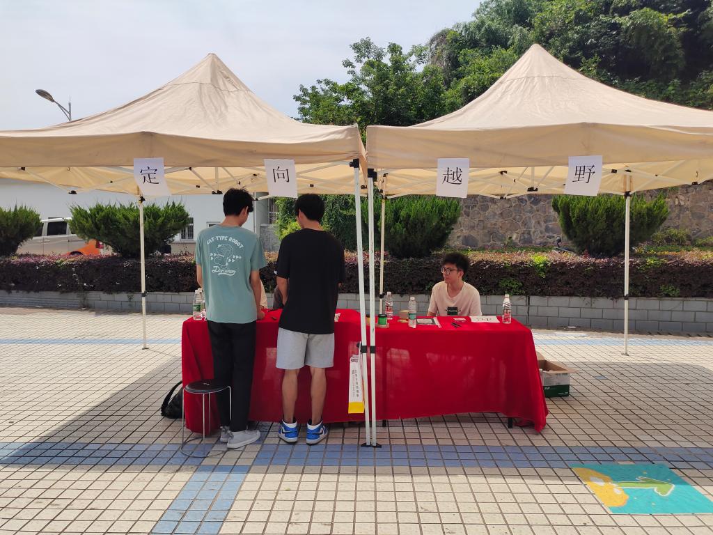 活动共分为“忆往昔”、“长征路”、“踏荆棘”、“沉住气”、“再起航”五个部分。首先,同学们需在润泽园领取活动记录卡。在舞池内的是活动的第一个点位,名为“忆往昔”。同学们可从党史、团史和校史中抽选题目回答。在一问一答之间,同学们对党史、团史和校史有了更加明晰的认识和了解。为让参与者感受“走长征路”的深刻意义,活动的第二个点位设置在学校内较为偏远的勤学楼南面,参与者需到达此地盖章后方可前往下一个点位。在操场的南端,是活动的第三个点位——“踏荆棘”,同学们在此处完成“摸石过河”的游戏,在不离开摸石过河砖的情况下,穿过事先准备好的10米宽“河”到达对岸即可。在这充满欢声笑语的游戏中,同学们应对困难的能力得到了进一步的提升。操场的另一端是名为“沉住气”的第四个点位,工作人员为每名参与者准备了一个乒乓球拍和一个乒乓球。同学们需要用球拍颠球前进,在保证球不落地的情况下到达终点,若过程中乒乓球掉落,则返回起点重新开始。此部分让同学们深刻体会到了坚持和忍耐的重要性。活动的最后一个点位设置在润泽园,名为“再起航”。同学们领取彩纸写下对党对团对南农的祝福,亦或是对自己的期望,折成纸飞机投入到箱子中即视为完成。