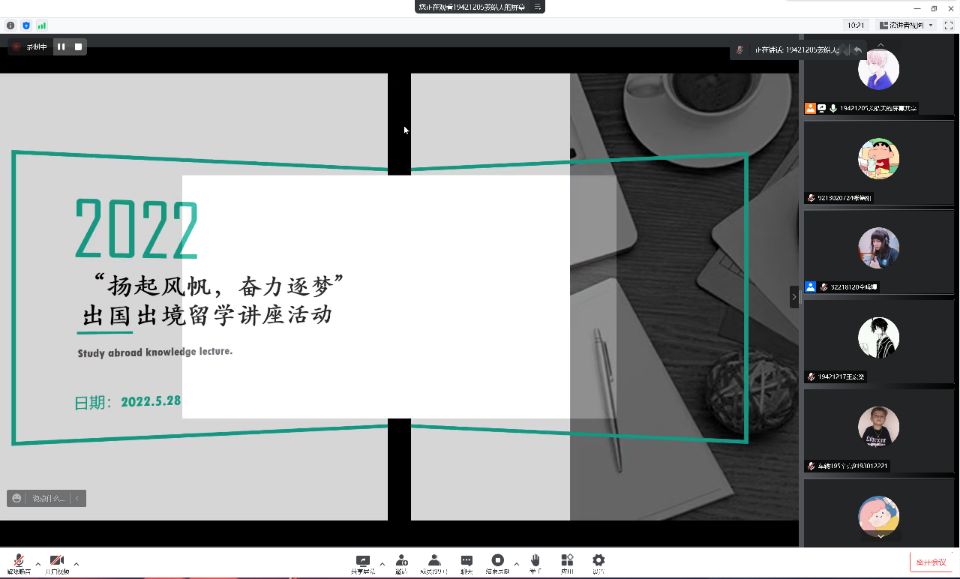 讲座开始,仝曦熳首先从香港留学教育入题,为我们介绍了香港大学的基本信息,并回答了留学该如何规划、香港适合哪些人群留学等方面的问题。同样从分享留学规划开始,邓博阳主要介绍了英国的大学环境并点明了去英国留学的必要条件,更强调对于留学应抱有积极态度。与前两位不同,颜子涵则是从个人经验出发,分享了自己申请留学的经历以及获得的教训,供同学们参考。之后,李启源在日本本土文化和教育制度两方面对赴日留学进行了分析,具体地阐释了留学日本的优势,给予同学们更多留学选择。此外,四位留学学子均留下了联系方式以便于和同学们更好地交流留学相关问题,讲座在一片欢声笑语之中结束。