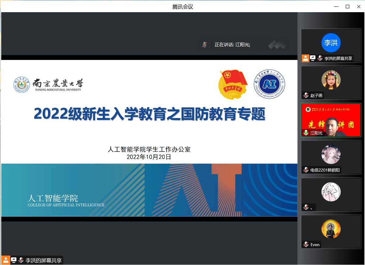 江阳光少校主讲,本科生辅导员李洪主持,全体新生线上参加。