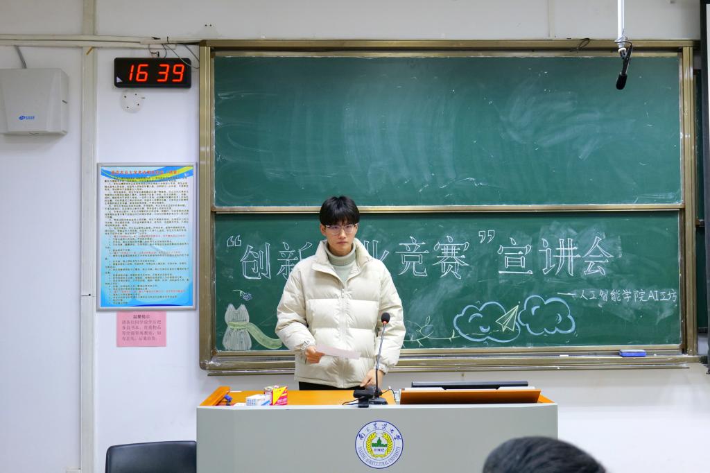 AI工坊在汇贤楼C202举办了“创新创业竞赛”宣讲会。本次宣讲会涉及“互联网+”大学生创新创业大赛、“创青春”大学生创业大赛、“挑战杯”竞赛。宣讲会旨在让同学们了解“三大赛”的内容、流程,并从中学习到相关知识技能。