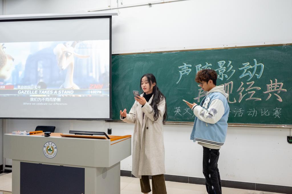 比赛共分为两轮,第一轮为个人赛,每位选手独立完成一份配音作品;第二轮比赛则需要选手两两一组,通力合作共同完成配音作品。在比赛中,每位选手都展示了较为深厚的配音功底,停顿恰当,语气贴切,给观众带来了一场精彩的听觉盛宴。评委老师从选手们配音过程中语音语调的标准程度、流畅程度进行总体评价,结合配音作品的选材难度给予客观的评分,并给选手们进行了专业的配音指导。