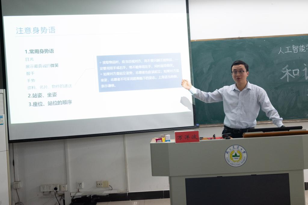 活动开始,万洋波老师分享志愿服务的经验,传授给同学们他在志愿服务工作中的各种收获与心得。在分享过程中,万洋波老师先就“志愿者是什么、应该做什么”、志愿精神、志愿者基本礼仪、如何面对和应急处理各种情况等进行了详细说明和分享;紧接着,万洋波老师对如何做好志愿者服务进行经验总结;此外,万洋波老师还展示了“青春节水行——水资源保护志愿服务项目”的精彩视频,为同学们提供志愿服务工作的典范,并借此视频提出“如何设计志愿服务项目”的宝贵建议。至此,本次分享交流会圆满结束。分享会生动有趣、内容丰富、引人思考,同学们认真听讲,学习氛围浓厚。