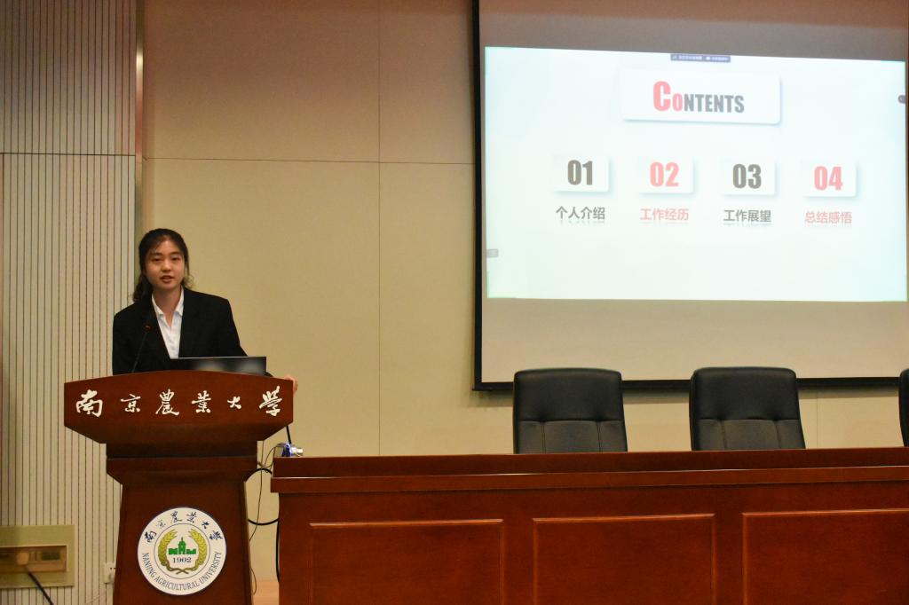 分党校秘书长南靖妍、团委副书记刘雅彬、全媒体中心责任编辑简汇佳、AI工坊主席薛志强做本学年工作总结汇报,同学们认真听取、审议上一届学生组织工作报告。