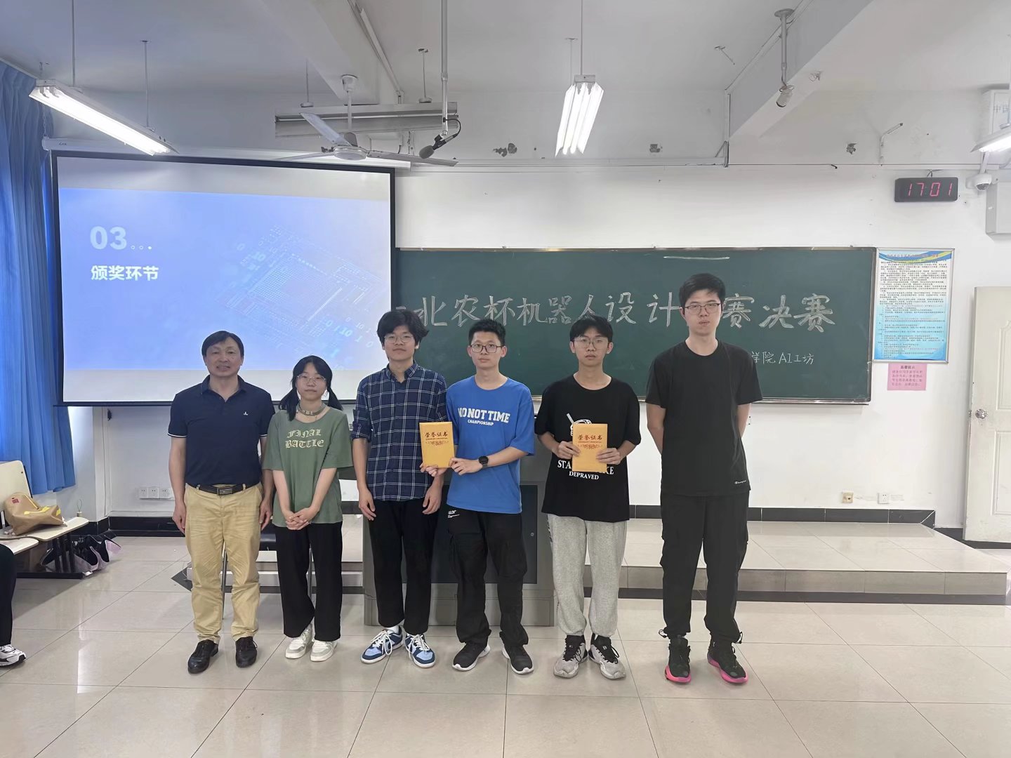 的大一同学进行宣传,介绍比赛规则和要求,让同学们对比赛有一个初步的了解;在中期,AI工坊于5月13日下午组织选手们进行参赛进度汇报,对参赛选手们进行了中期检查,并给予选手们一些建设性的意见;在末期,AI工坊于5月27日下午有序组织开展决赛,组织各人员根据各小组作品在赛道的完成度、成果汇报、答辩、作品设计报告的四项情况进行综合打分评奖。由李林老师评价并指导参赛选手的小车汇报、设计报告以及赛后答辩,由王嘉成、李涛、周新程根据参赛选手的智能小车完成赛道的情况进行评价打分,最后由刘威、钱瑞、冯义博、丁巧芸、熊子怡统计各参赛小组的分数。经评审,最终的获奖名单如下: