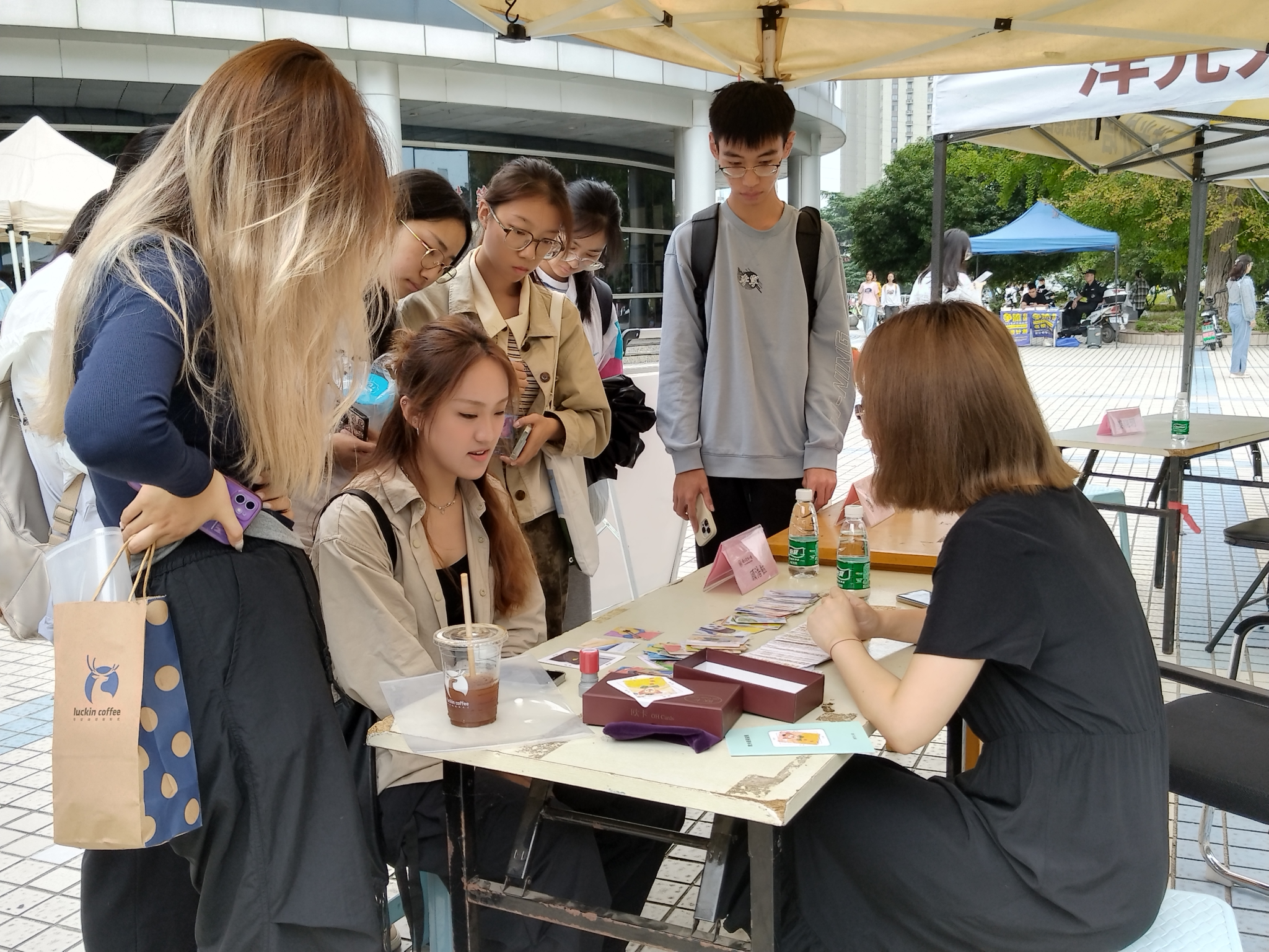 专业赋能,保驾护航。高校心理健康教育队伍是学生心理成长的有效载体,是促进学生全面发展的重要力量。“心之链接”环节由专职心理咨询师创造出“尊重、同感、真诚、保密”的氛围,为现场同学答疑解惑,梳理思绪上的小困扰,重塑大学生活新方向。“心之乐园”环节设置了沙盘游戏体验区和欧卡牌互动区,带同学们体验不一样的心灵探索之旅。沙盘游戏通过非语言的表达,创造一个独特的沙盘世界,由此通往内心世界,开启认识自我的新视角。欧卡牌则凭借对感受、思考和经历的叙事,促进情感的认知与表达,加强对内心世界的洞察。