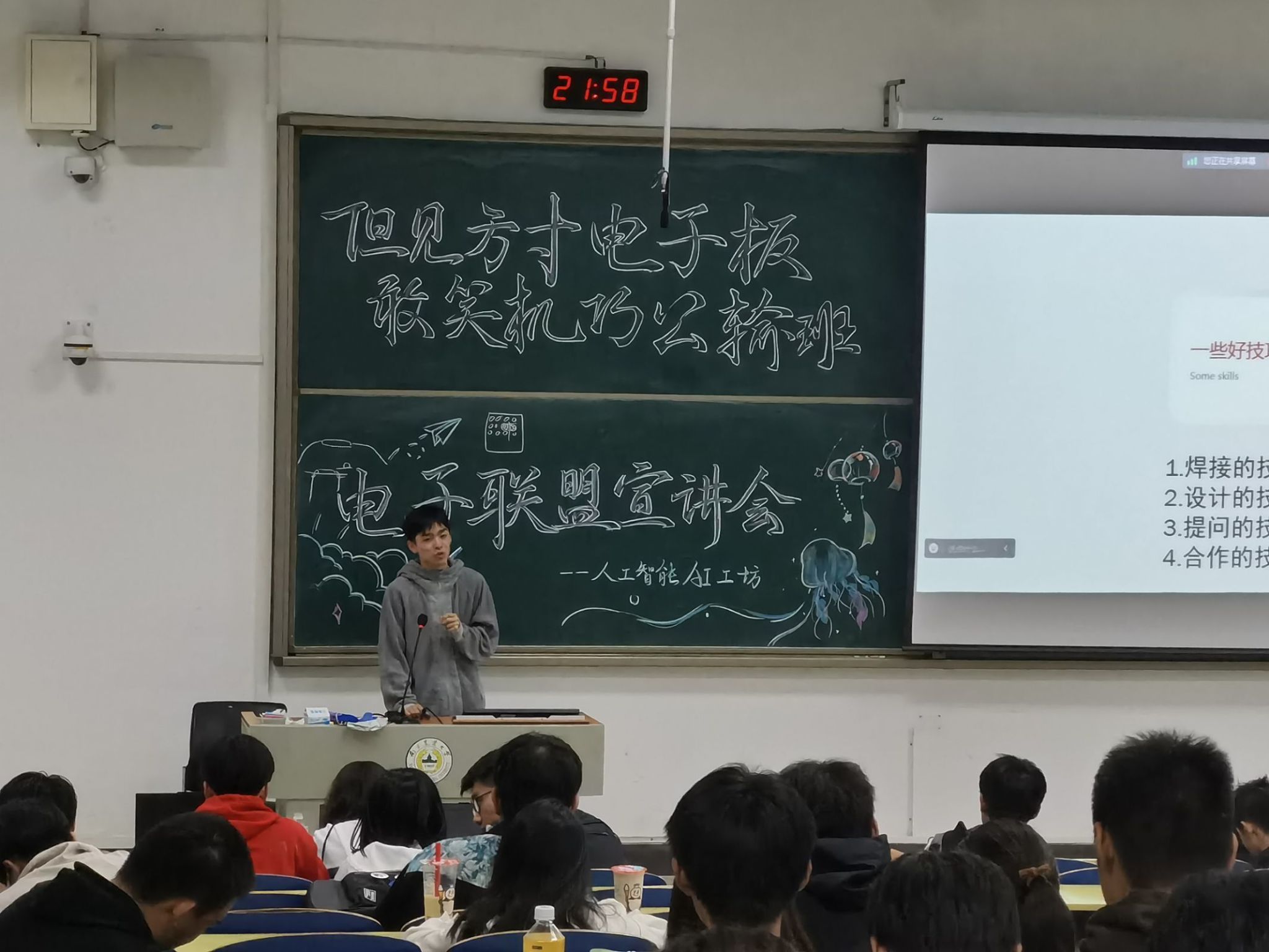 AI工坊于11月19日在汇贤楼D101成功举办“走进工科世界”电子联盟大赛决赛。此次比赛旨在丰富同学们的课余生活,加深同学们对电路知识的掌握,促进校园科技文化的建设。