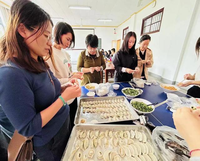 工会组织了包饺子暨掼蛋活动,为老师们提前准备好了馅料、饺子皮以及工具,女老师们忙着纷纷展示手艺,男老师们则聚在一起聊天掼蛋,整个活动过程氛围活跃,场面温馨,其乐融融。