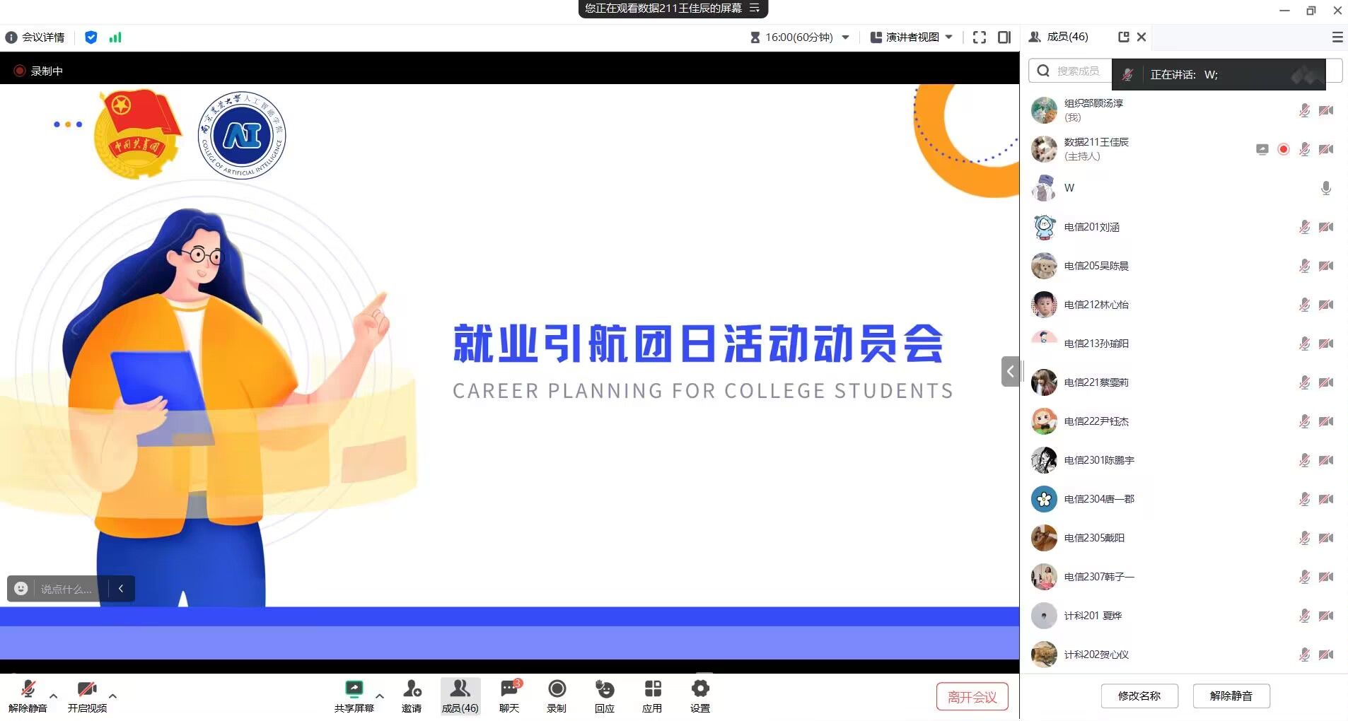 同时,动员大二、大三各团支部围绕“实现个人价值,规划职业发展”开展相关团日活动,通过组织分享会,互相交流职业观念并做出简单的职业规划,帮助同学们更好地确立自己未来发展的方向,更好地建立积极的心态,也能从别人的想法中获得启示,并找到适合自己的路。