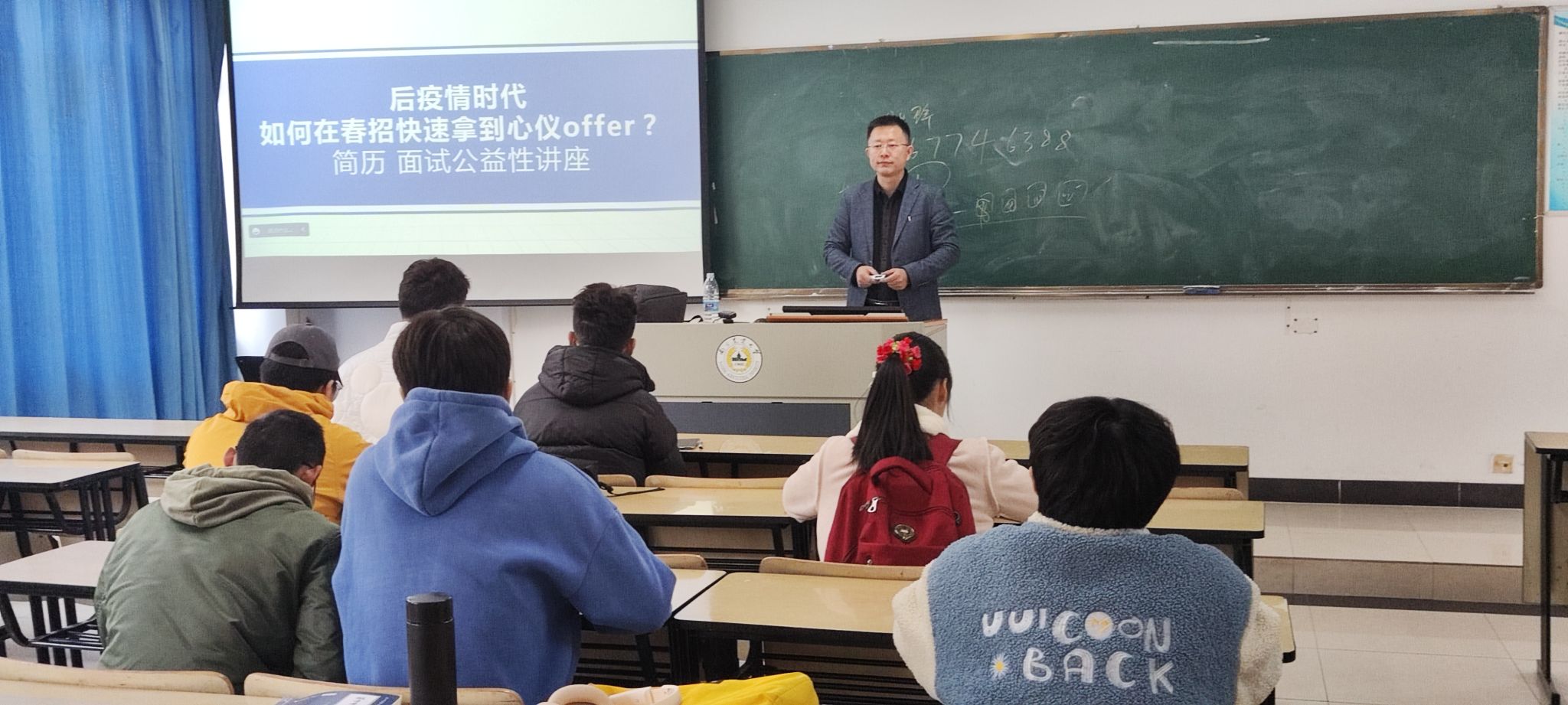 团委举办“春招”简历制作、面试能力提升指导讲座,讲座特邀艾瑞集团汇智系统集成有限公司项目负责人陈韩老师主讲,旨在分享简历完善、面试能力提升的经验,解决同学们在“春招”中的各种问题。