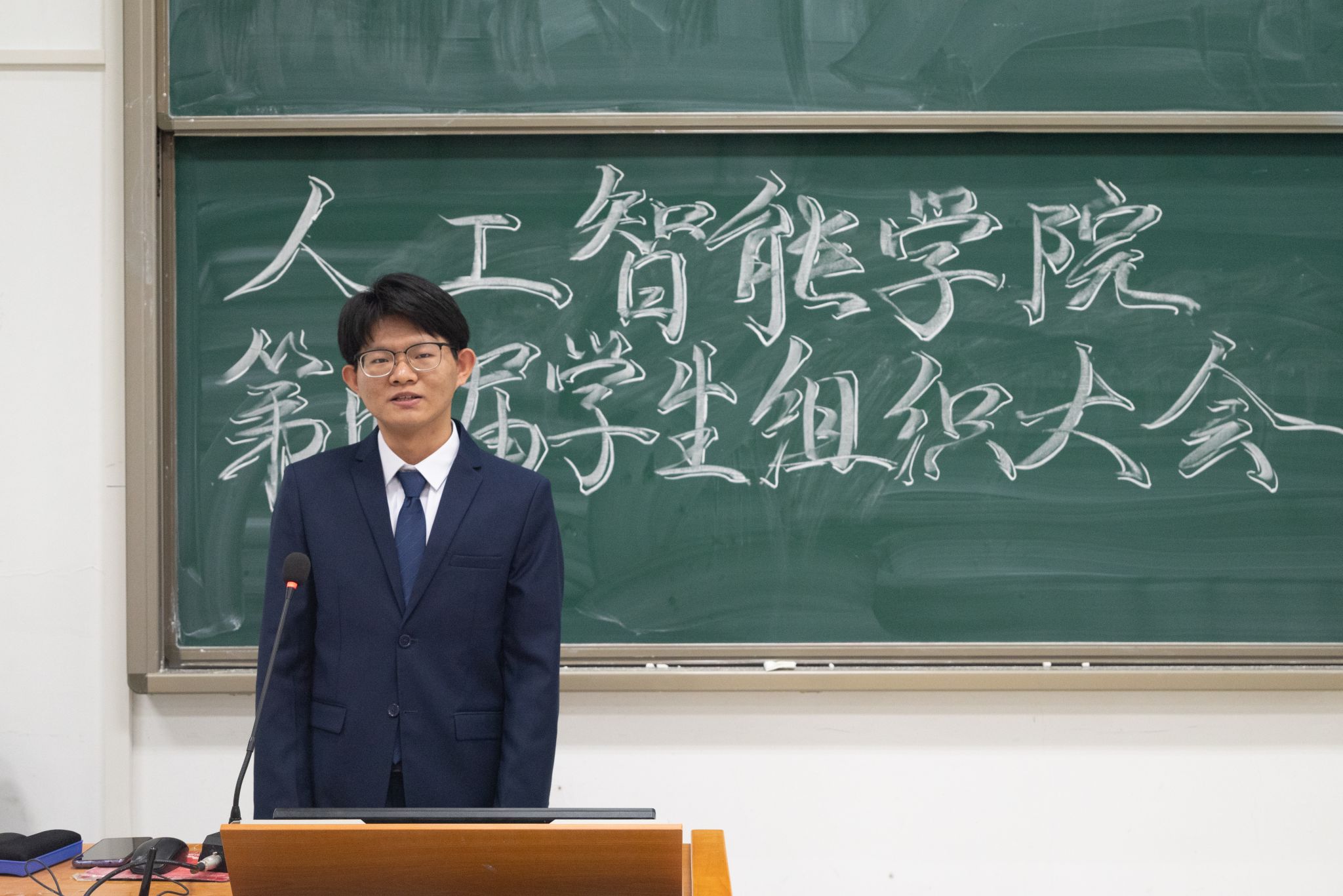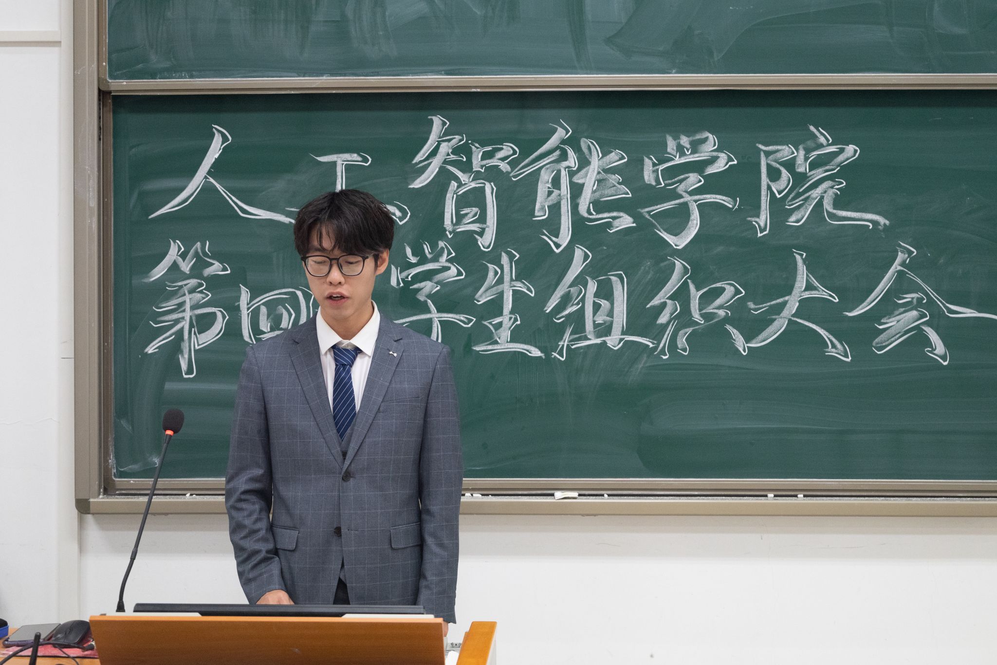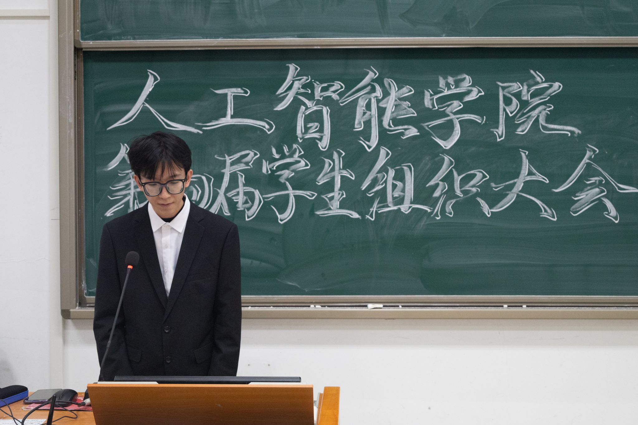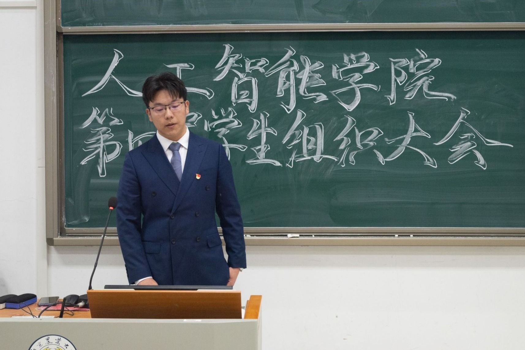 随后,议程第二项,分党校秘书长沈豪杰、学生团委副书记王佳辰、学生会执行主席吴刘柯、全媒体中心主任黄逸宸、AI工坊主席张国航依次上台,分别介绍了赌博网