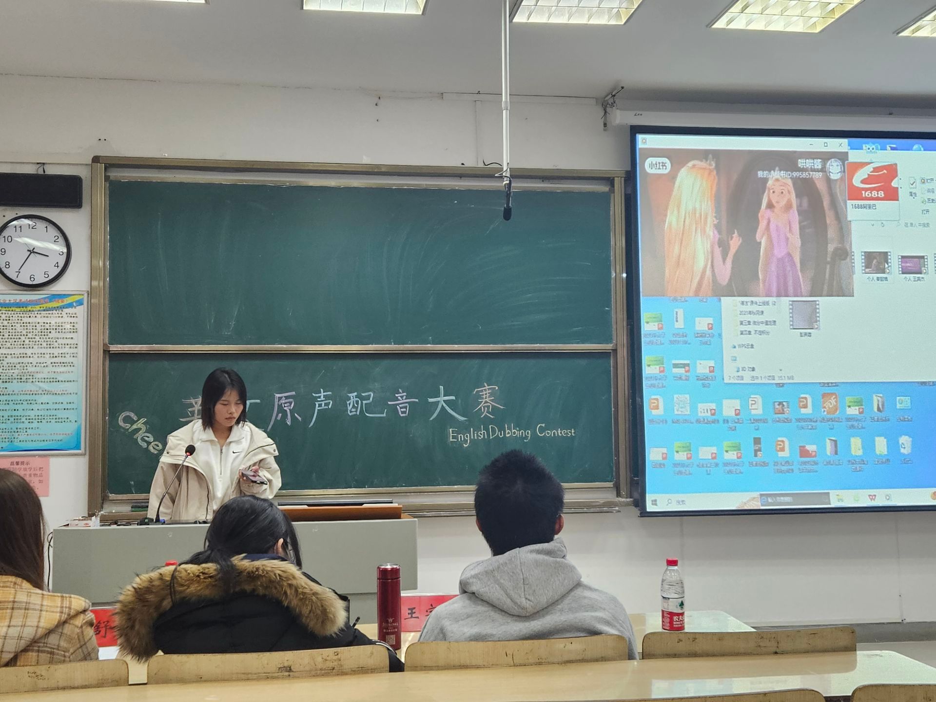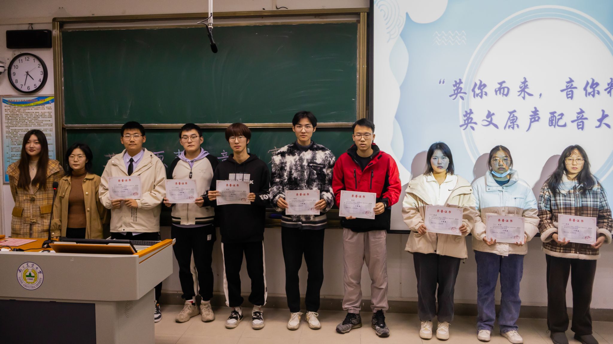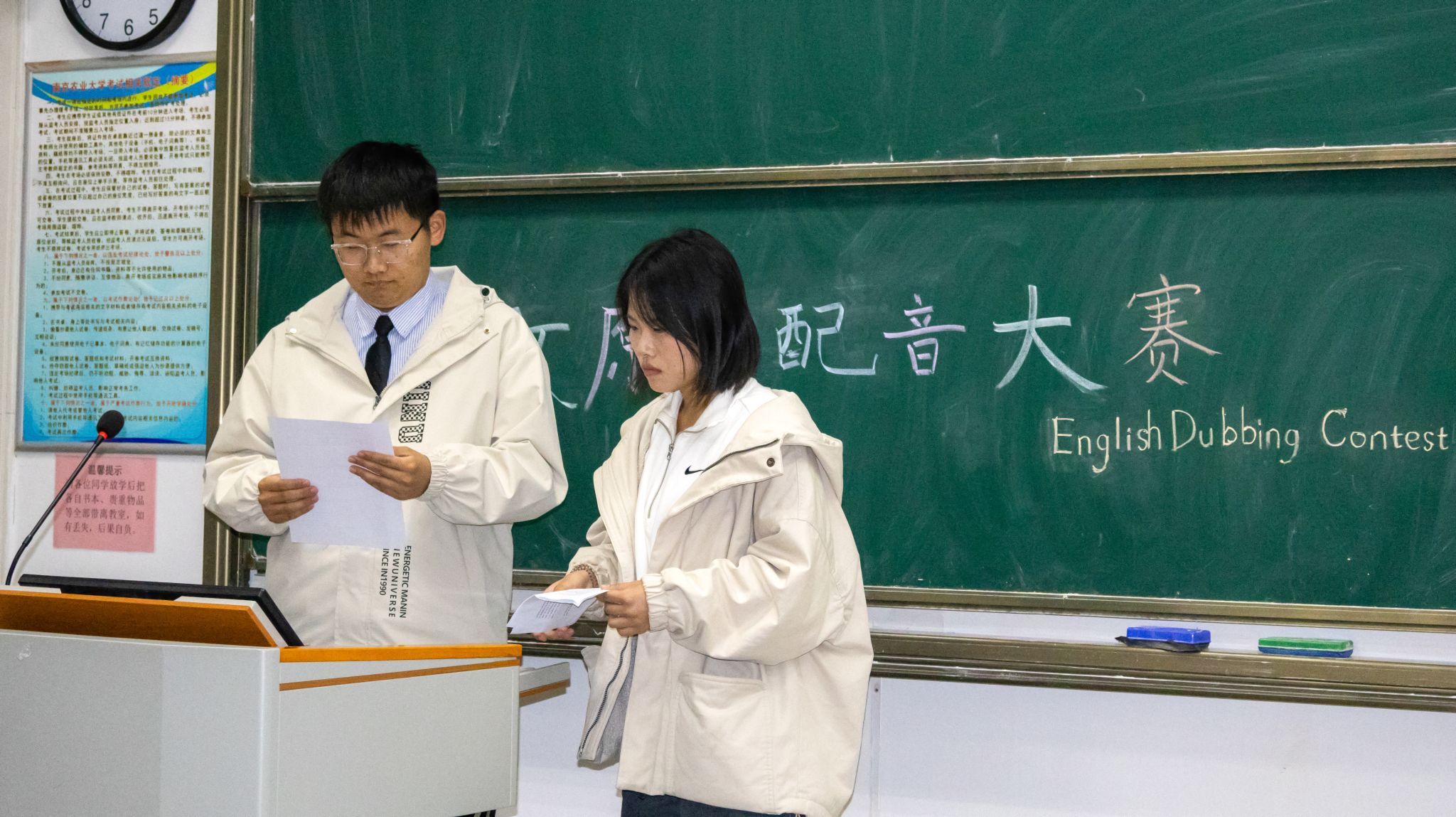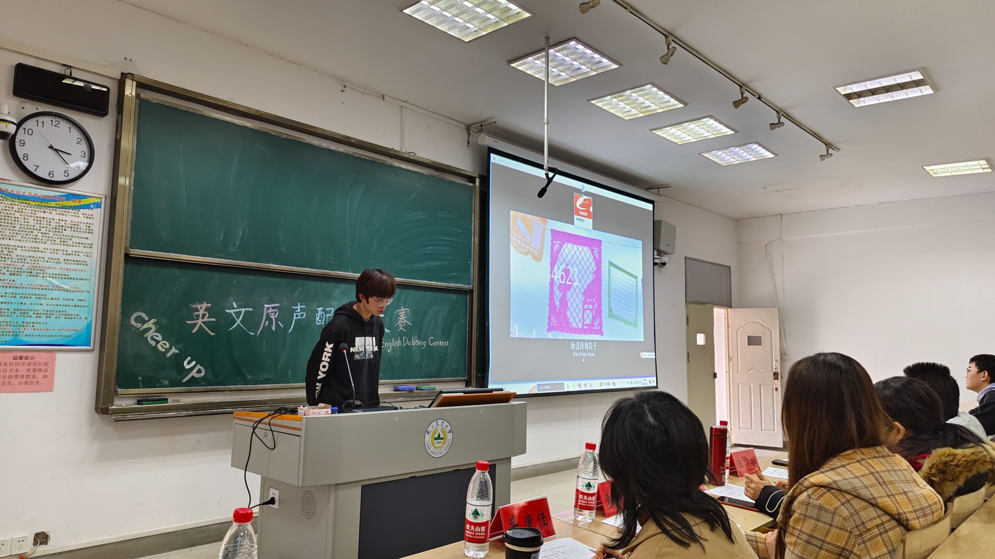 学生会举办了本次“‘英’你而来,‘音’你精彩”英文原声配音活动,并由张震老师和学生代表丰康佳、袁增舒、王宇航担任评委。