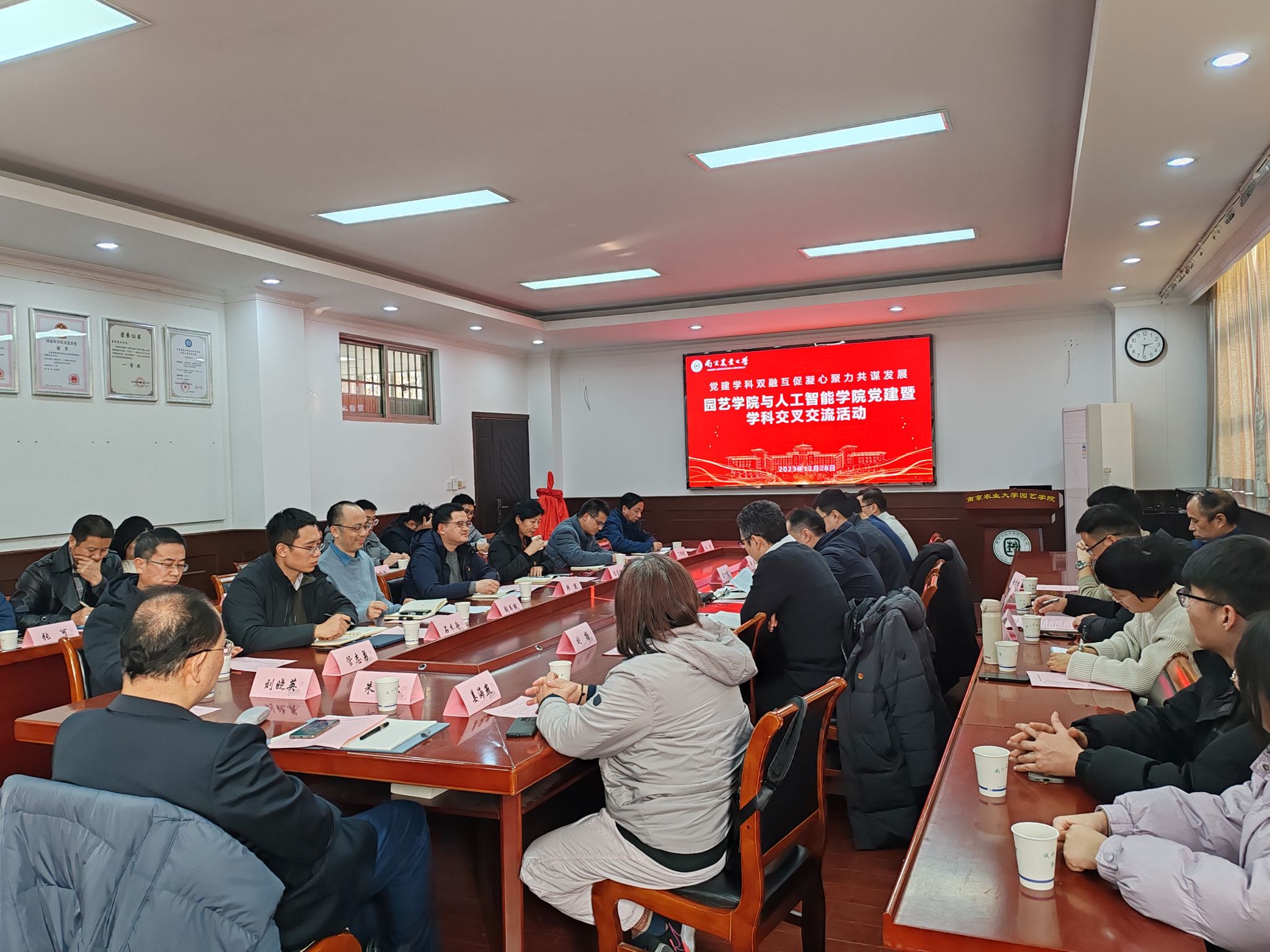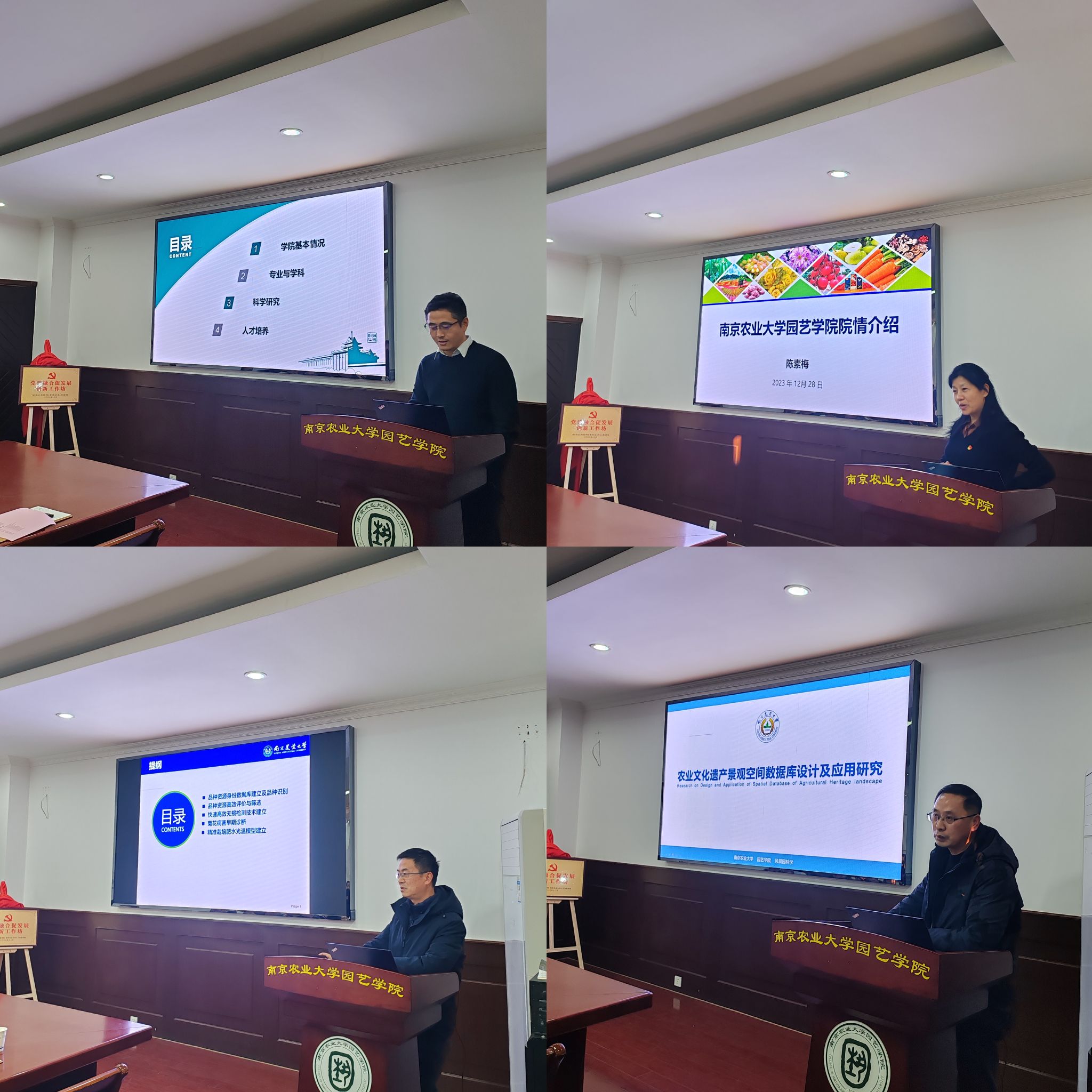 管志勇教授作《菊花品种资源及精确栽培研究》报告、丁绍刚教授作《农业文化遗产景观空间数据库设计及应用研究》报告,双方认为园艺和人工智能技术相结合是建设符合“新农科”发展需求的新园艺学科的必然路径,也是学科交叉融合发展的大趋势。
