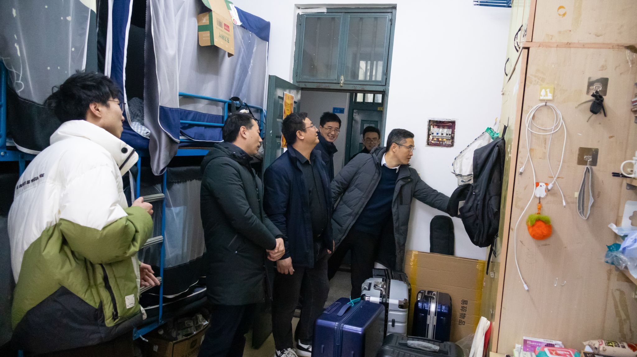 党委书记田永超、副院长陆明洲(主持工作)、党委副书记吕一雷、自动214班班主任刘龙申、自动212班班主任陈卫、学工办副主任湛斌、辅导员于佳琪一同深入学生宿舍,开展宿舍走访工作。