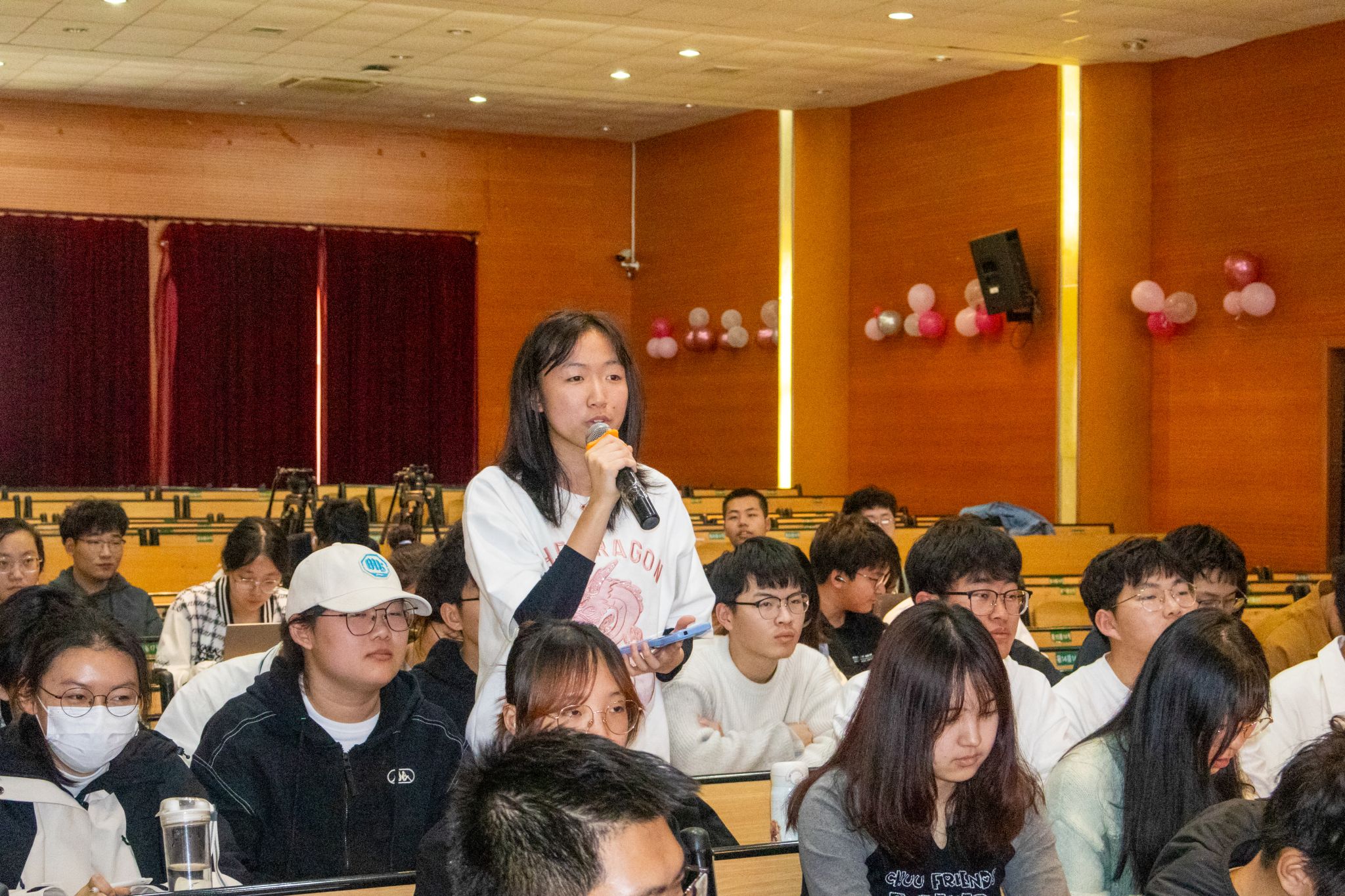 党委副书记吕一雷、自动化系主任刘璎瑛、电子信息系主任李林、教学秘书蒋菠、本科生专职辅导员湛斌、封筱、于佳琪出席本次讲座,2023级电子信息类全体学生参加活动。