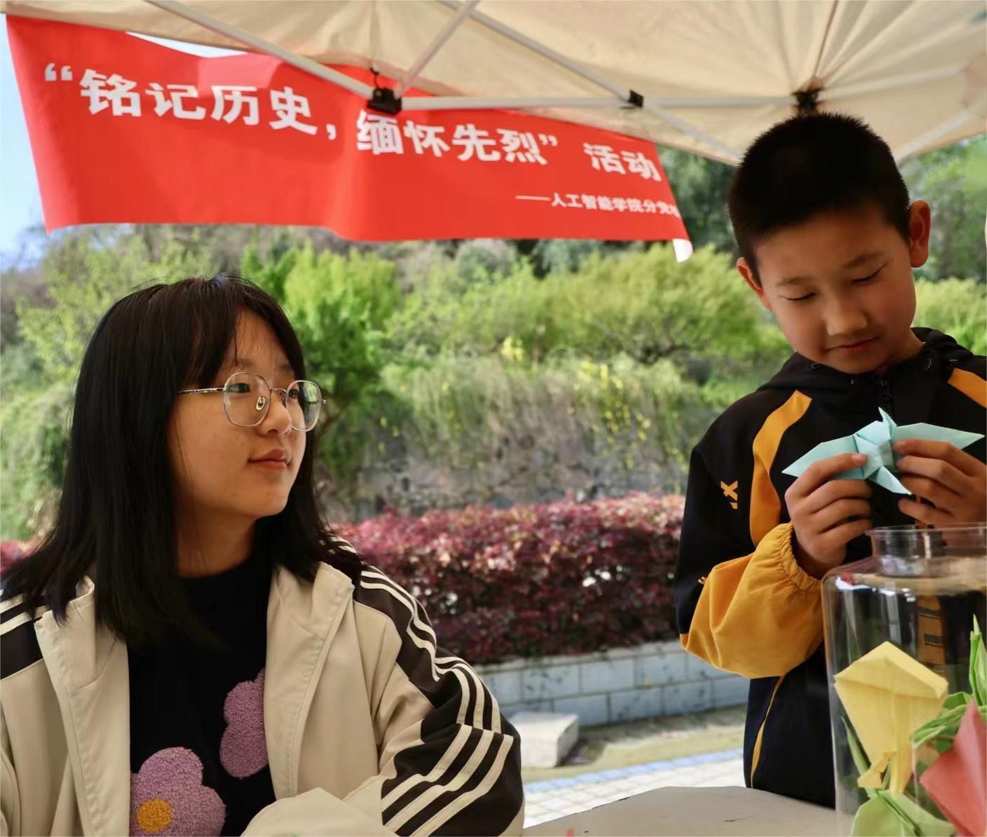 团委于4月3日集中组织清明节系列活动,参与者有的在缅怀诗会中铭记历史、厚植爱国情怀,在雨中吟诗作对;有的则在折纸活动中大显身手,以鹤诉情,折菊寄思,祭奠英烈。与此同时,线上参与者借助数媒载体,深入了解清明传统及习俗,通过网络寄语以文抒情、致敬英烈,表达对逝者的沉重悼念。
