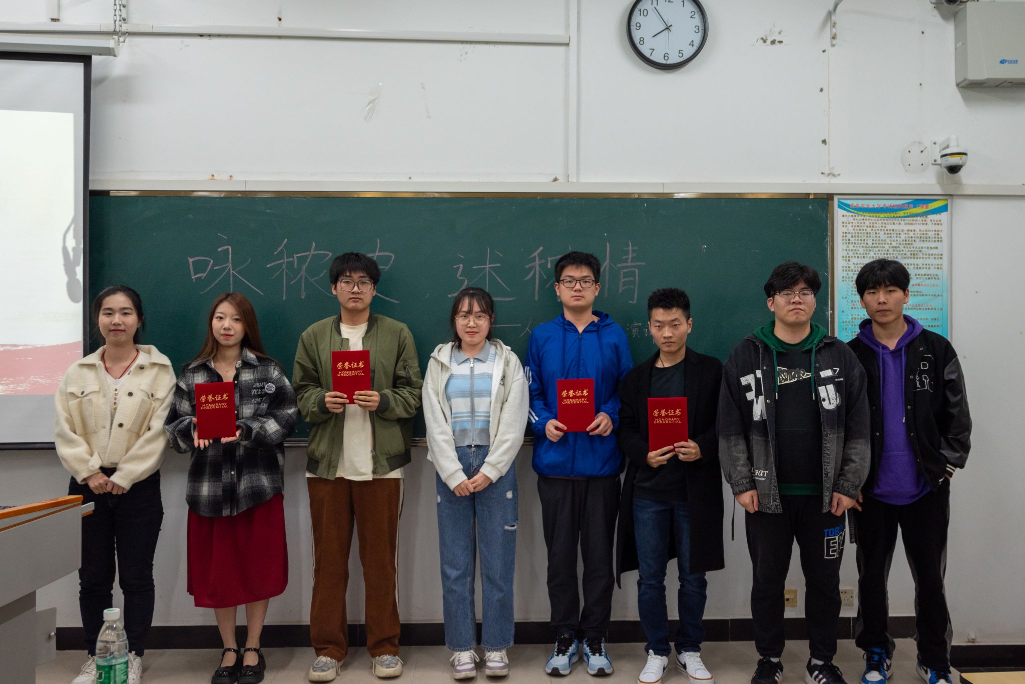 本科生专职辅导员于佳琪为他们颁发荣誉证书。