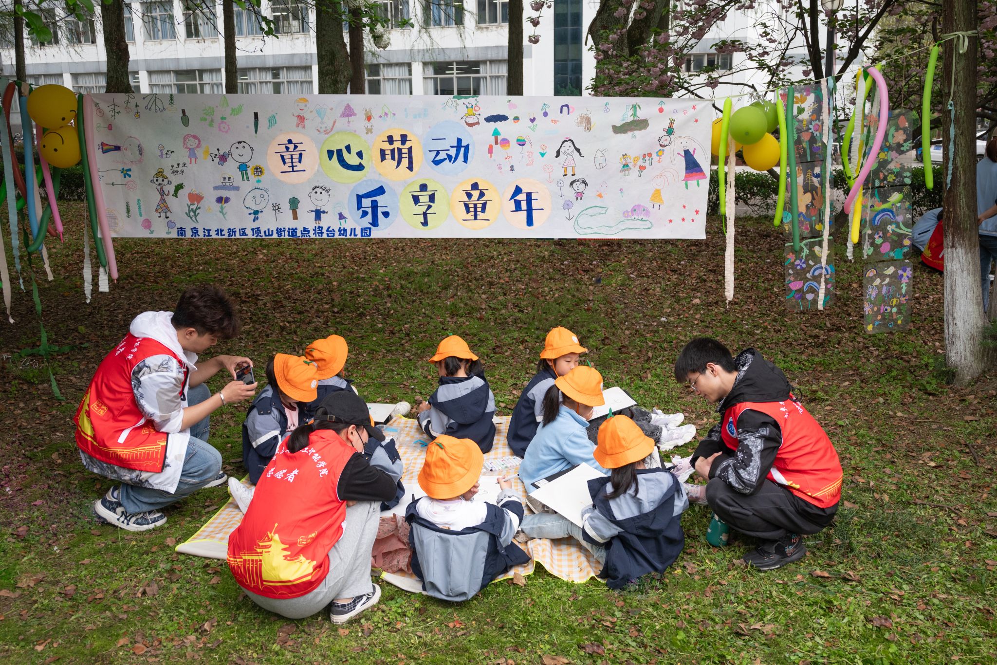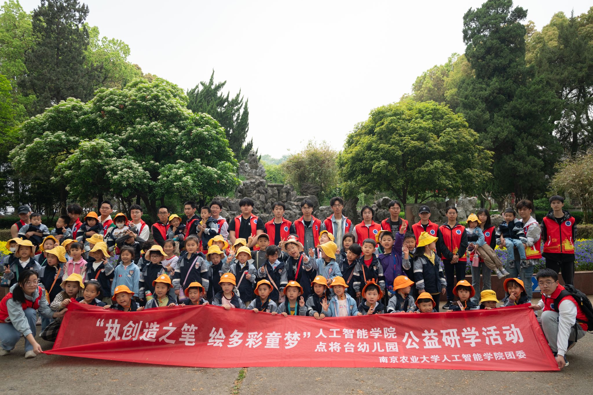 团委携手点将台幼儿园,共同启动了一场别开生面的“执创造之笔,绘梦想之彩”公益研学活动。幼儿园100余名师生来到南京农业大学浦口校区,此次活动不仅让幼儿园的小朋友们亲身感受了大学校园的春日美景,也让小朋友们在多样的活动中尽享大学文化浸润。