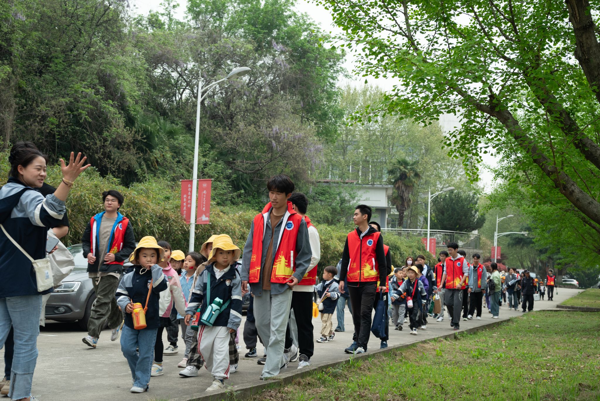最后,相机记录下了志愿者们与小朋友们的难忘瞬间,小朋友们在志愿者和老师的护送下,带着满满的收获和欢乐离开了南京农业大学。