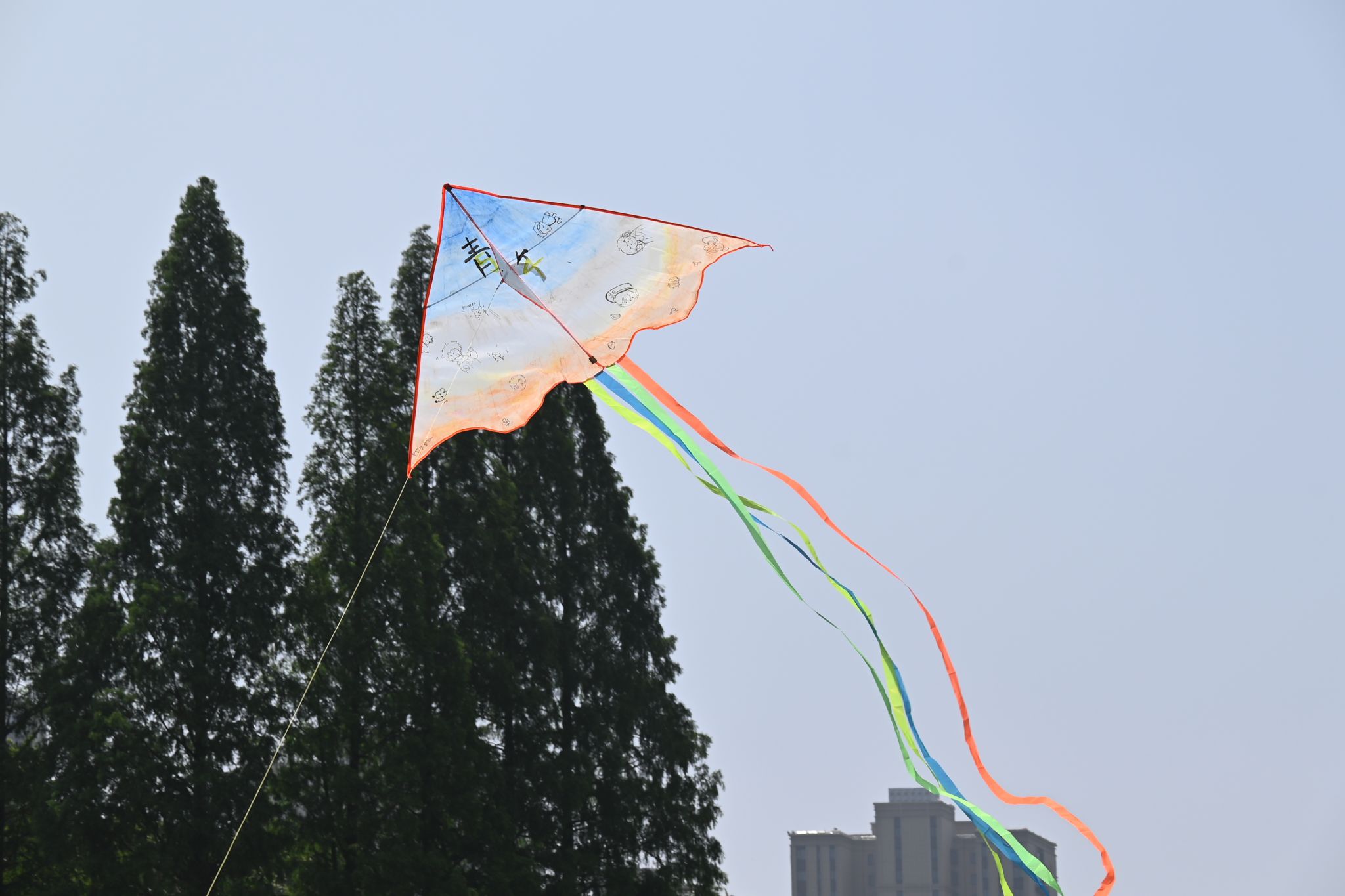 活动第二部分,同学们怀揣着对五四精神的感悟来到操场,进行了“锦绣前程,高飞远翔”放飞行动。期间,支部成员自由分组,集思广益,用画笔在风筝上精心描绘了丰富多彩的各式标语图案,最后将寄托青春理想的风筝放飞于蓝天翱翔。