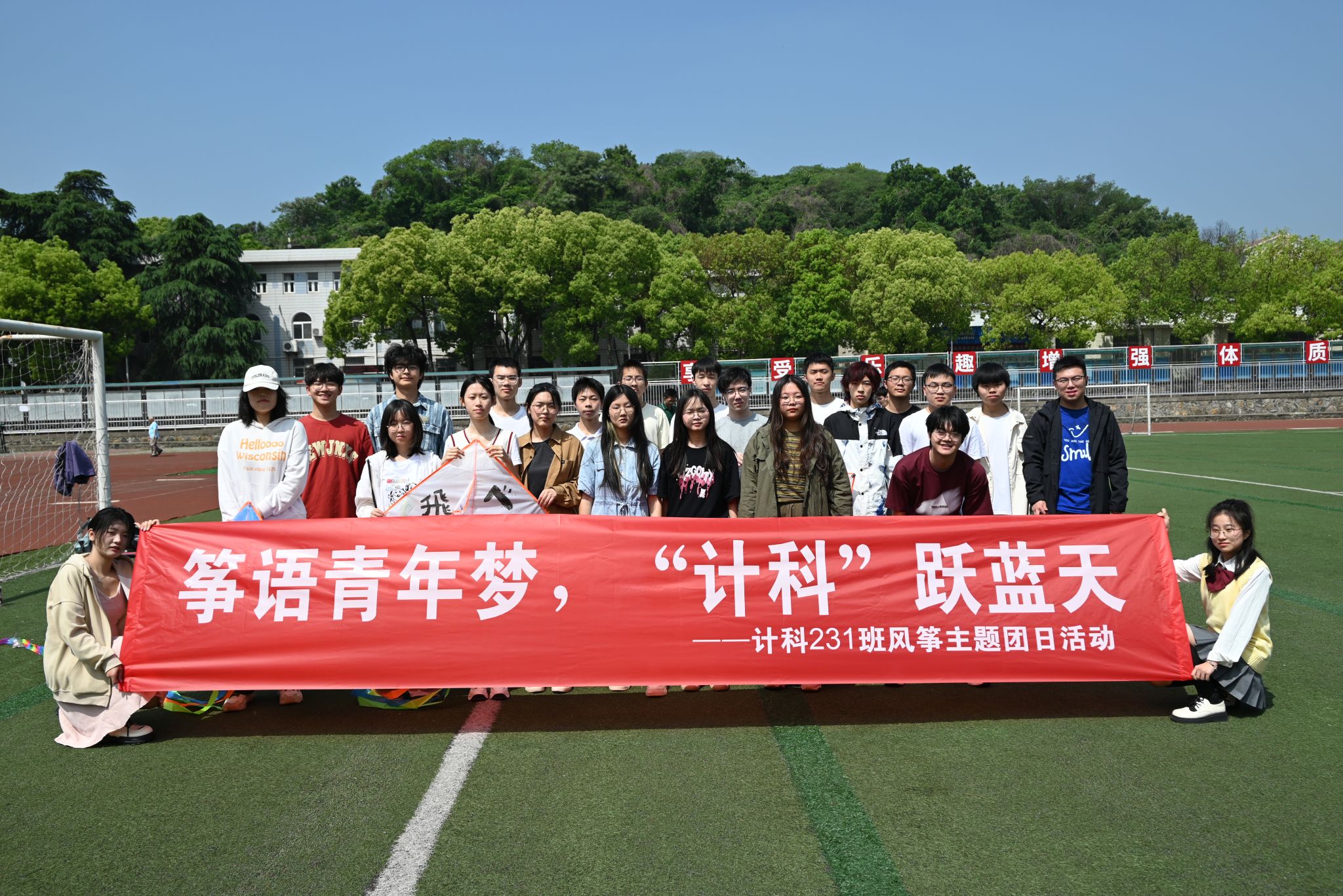 计科231团支部在五四青年节即将来临之际,开展了“筝语青年梦,‘计科’跃蓝天”风筝主题团日活动,以风筝为载体坚定信念放飞理想。