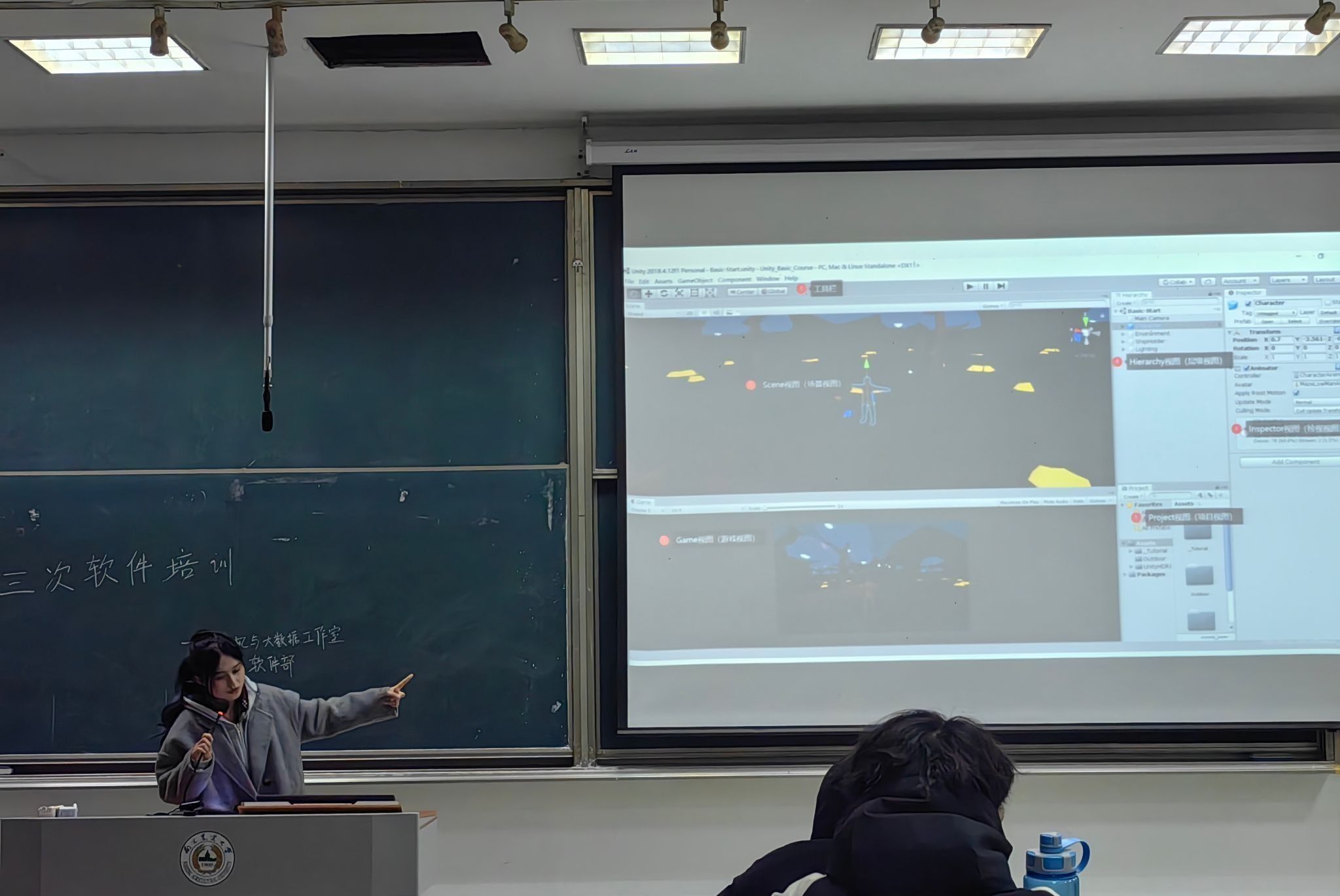 官方账号及相关科研群进行了广泛宣传,获得了学生的热烈反响和积极参与。本系列培训每个主题分配两课时,针对计算机系专业核心的算法、网页、软件能力开展,具体包括数论基础、三分算法、Unity引擎、JAVA网页设计等相关内容。各授课主讲人利用生动的案例,丰富的多媒体内容,深入浅出地介绍了培训相关内容,令在场同学收获颇丰。