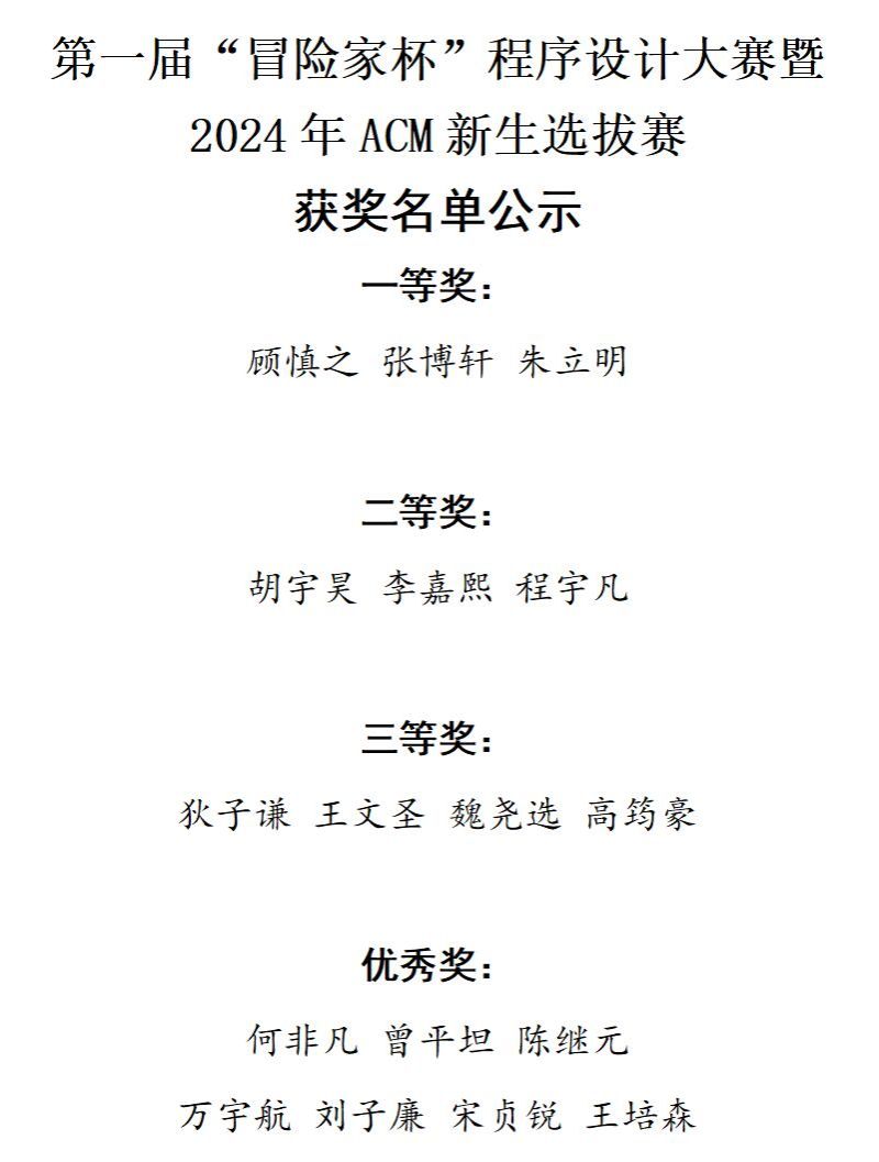 AI工坊计算机与大数据工作室举办第一届“冒险家杯”程序设计大赛暨2024年ACM新生选拔赛。