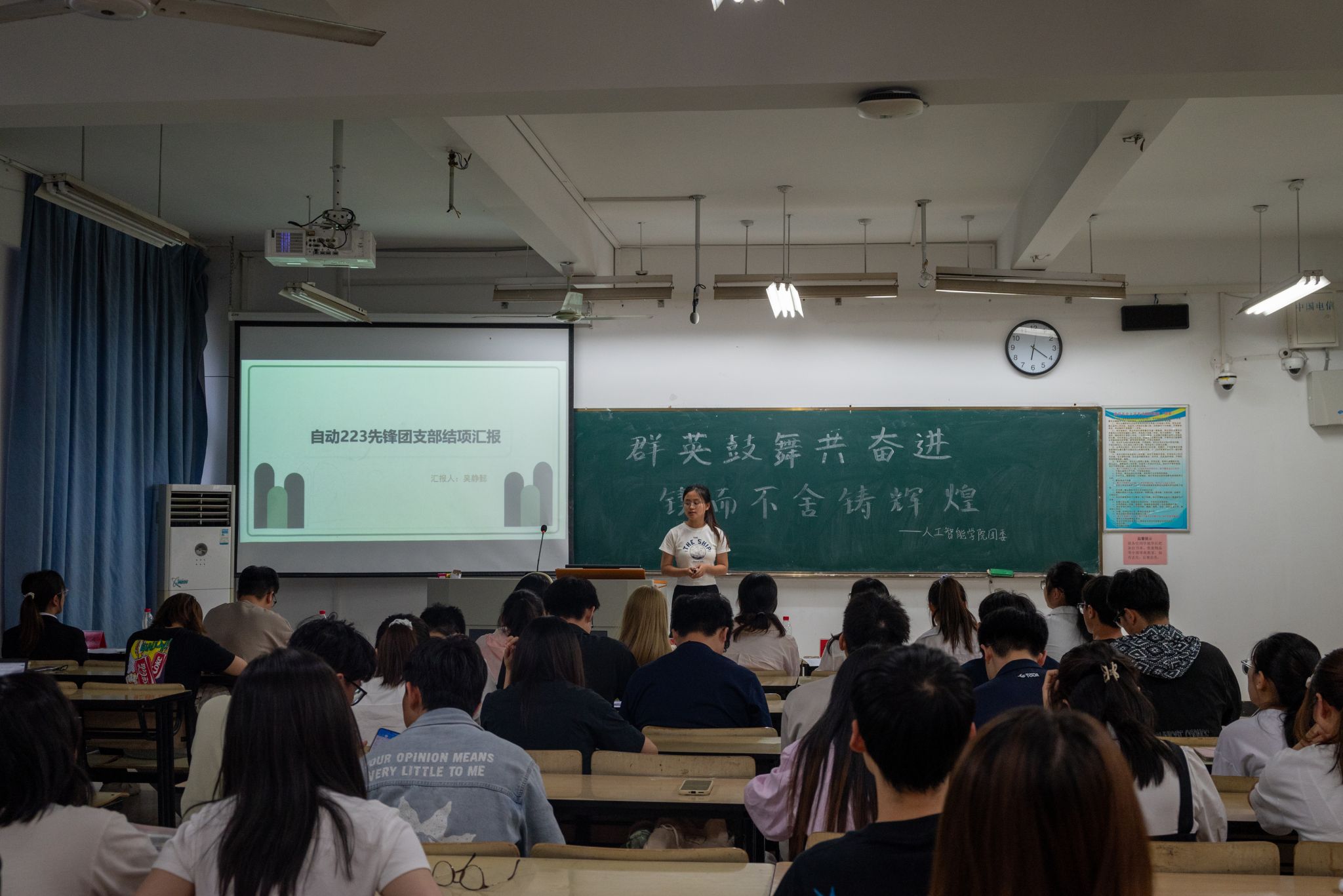 汇报结束后,魏宇宁上台致辞。她在讲话中对各支部所取得的成绩表示充分肯定,并对基层团组织未来工作提出了更高的要求。最后,经中期材料审核及终期答辩等综合评定,数据231团支部荣获一等奖,数据221团支部荣获二等奖,电信2304团支部荣获三等奖,会议至此圆满结束。
