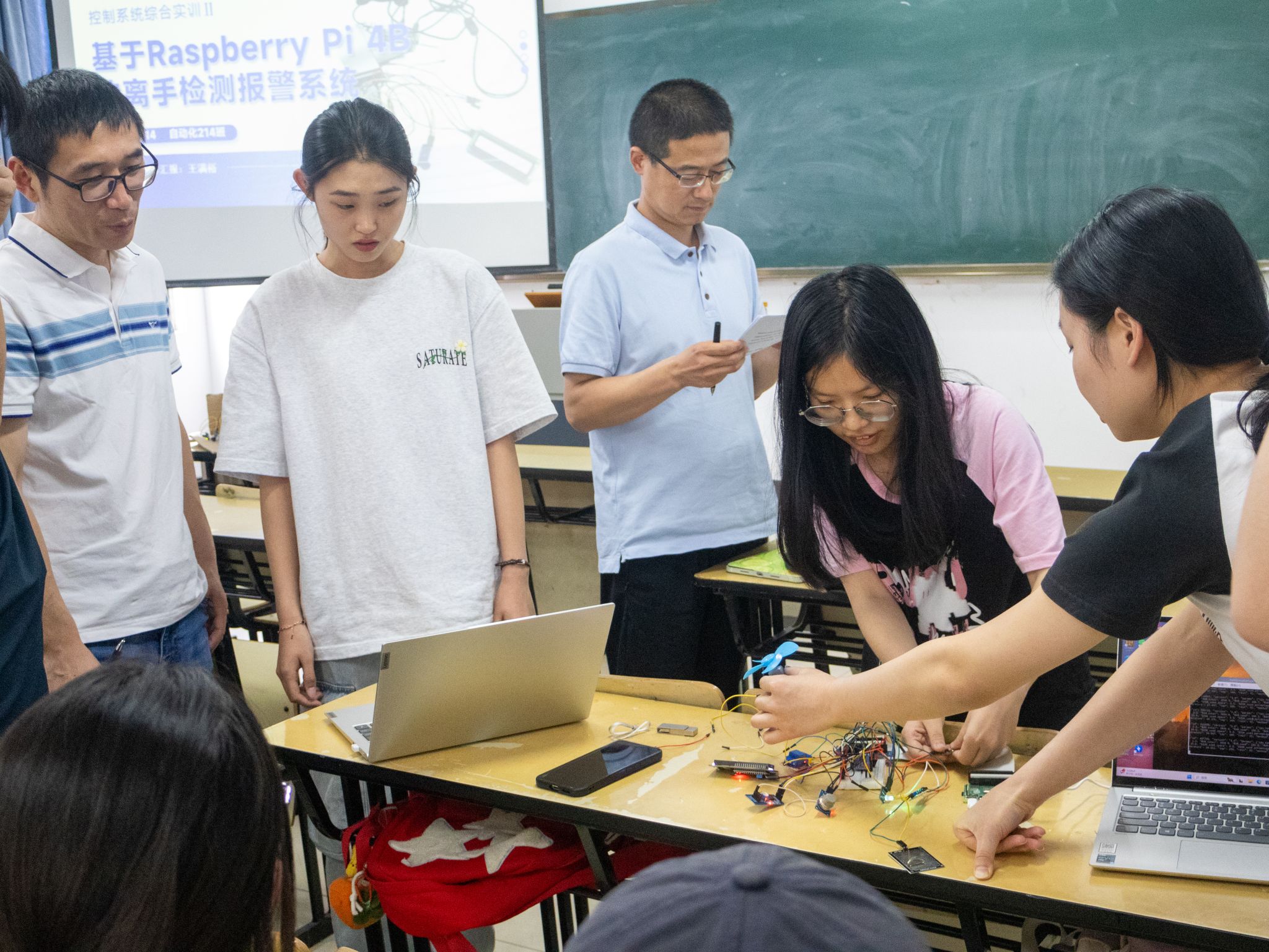 为保障实训项目的高效执行,自动化教研组老师展开了全面的前期调研,通过多次专题研讨会细致规划,引导学生全心投入到各自项目研发中。学生在实训过程中展现出高昂的学习热情与积极主动的学习风貌,两周集中实践完成了多功能控制系统的软硬件设计与调试,不仅提升了学生的动手操作技能,也进一步培养了他们面对复杂工程挑战时的解决策略与创新意识。