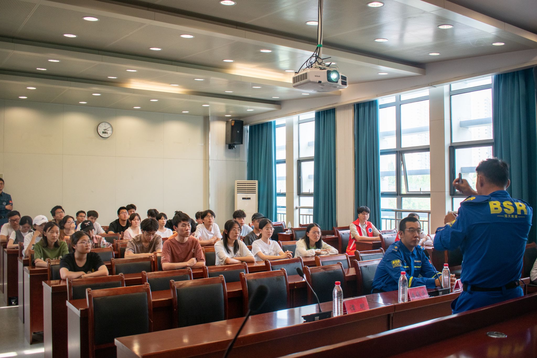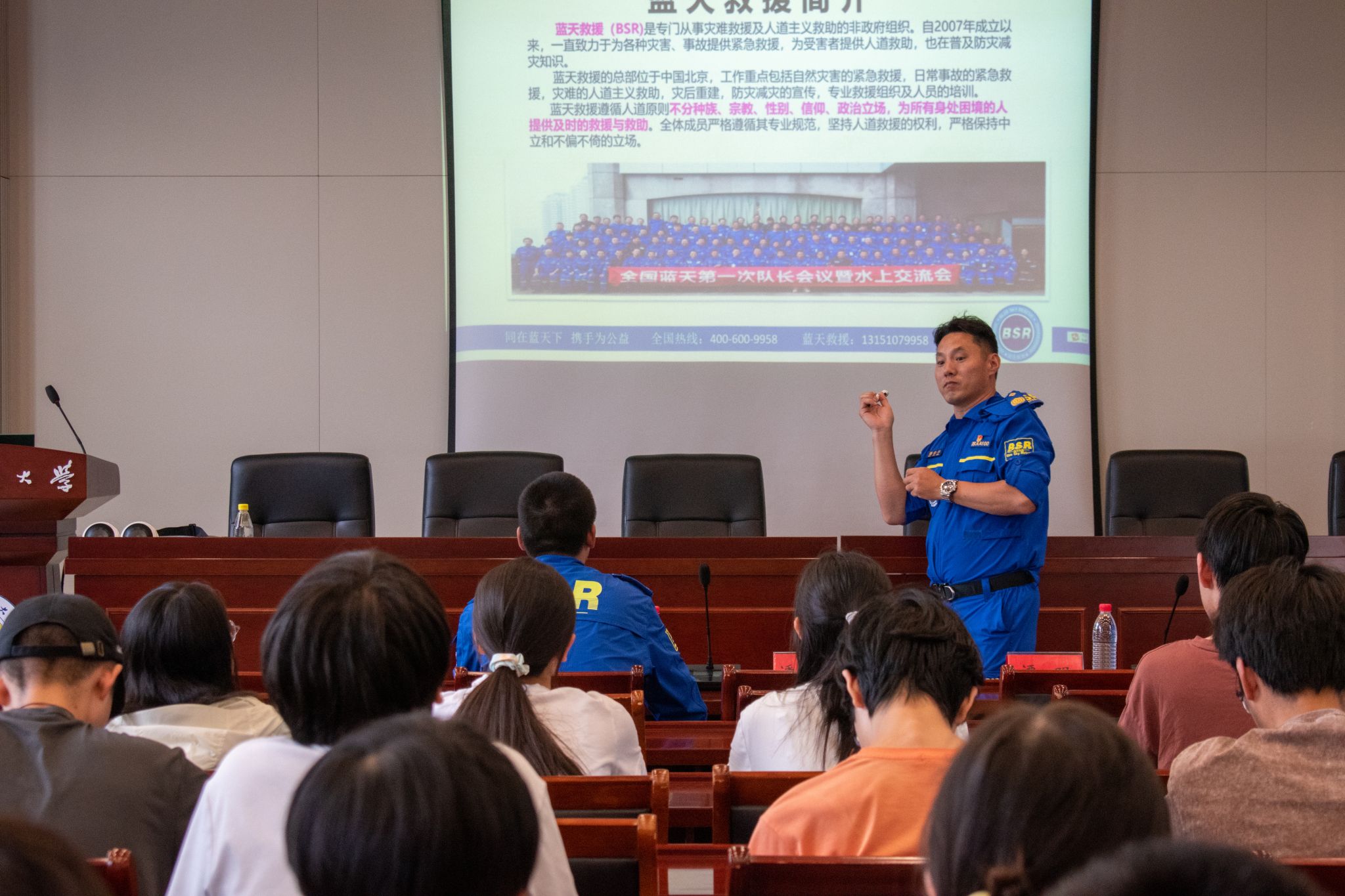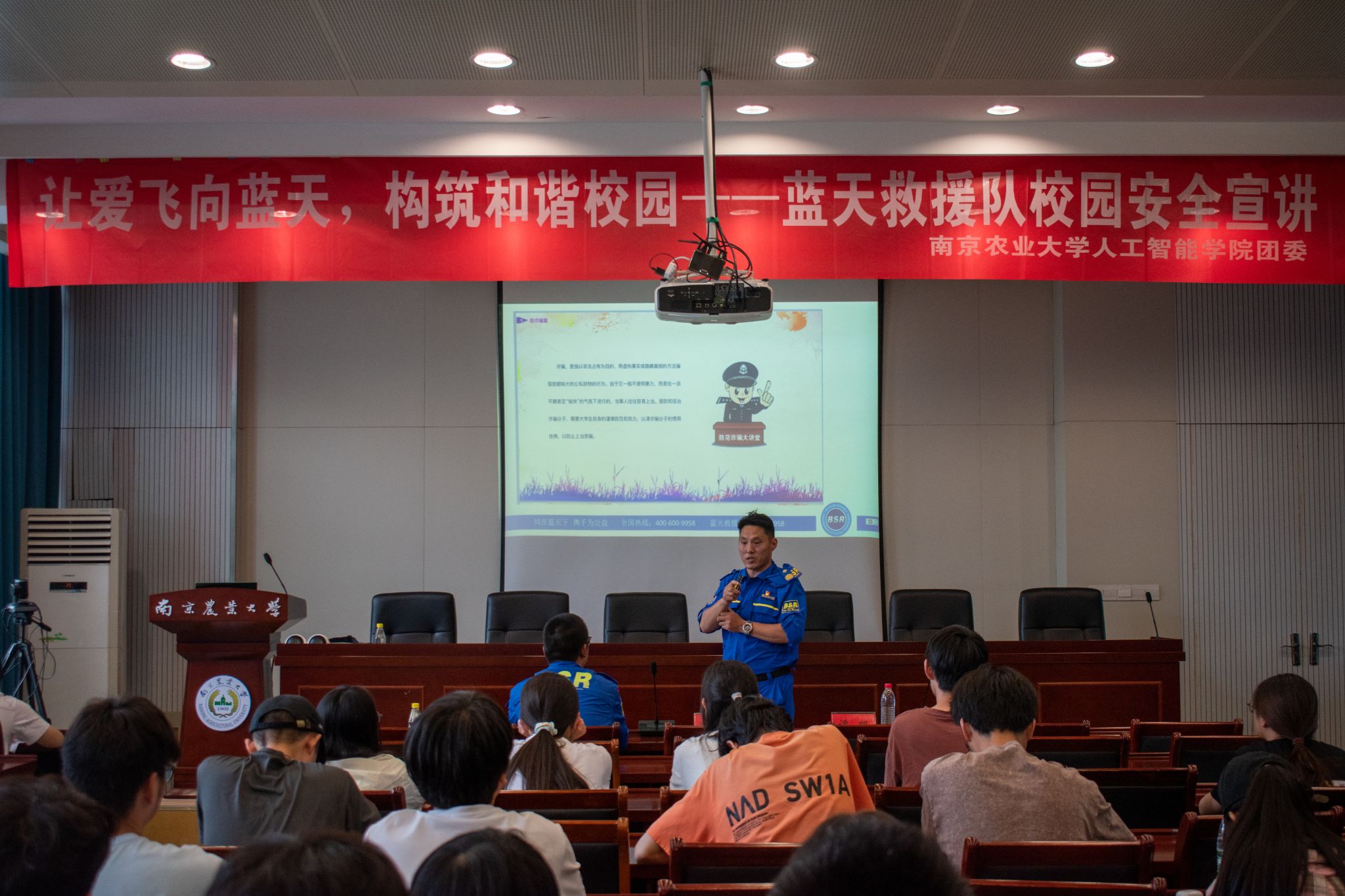 团委青协红会特邀南京蓝天救援队走进校园,为学生们带来了一场生动活泼的安全宣讲。从五防教育、校园安全切入,让同学们充分意识到身边的安全隐患并且提高了对突发事件的应对能力。
