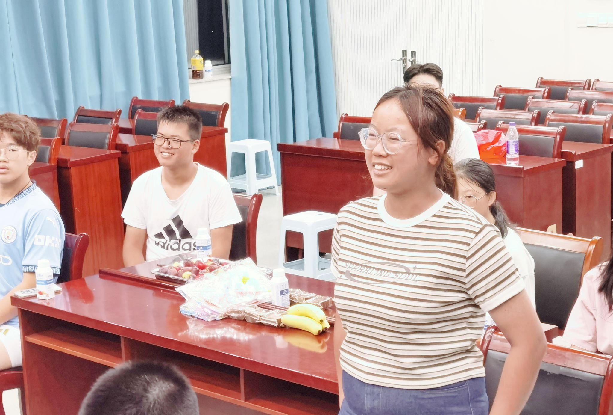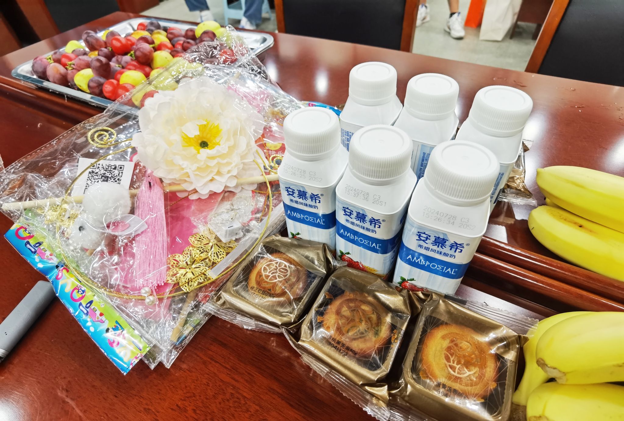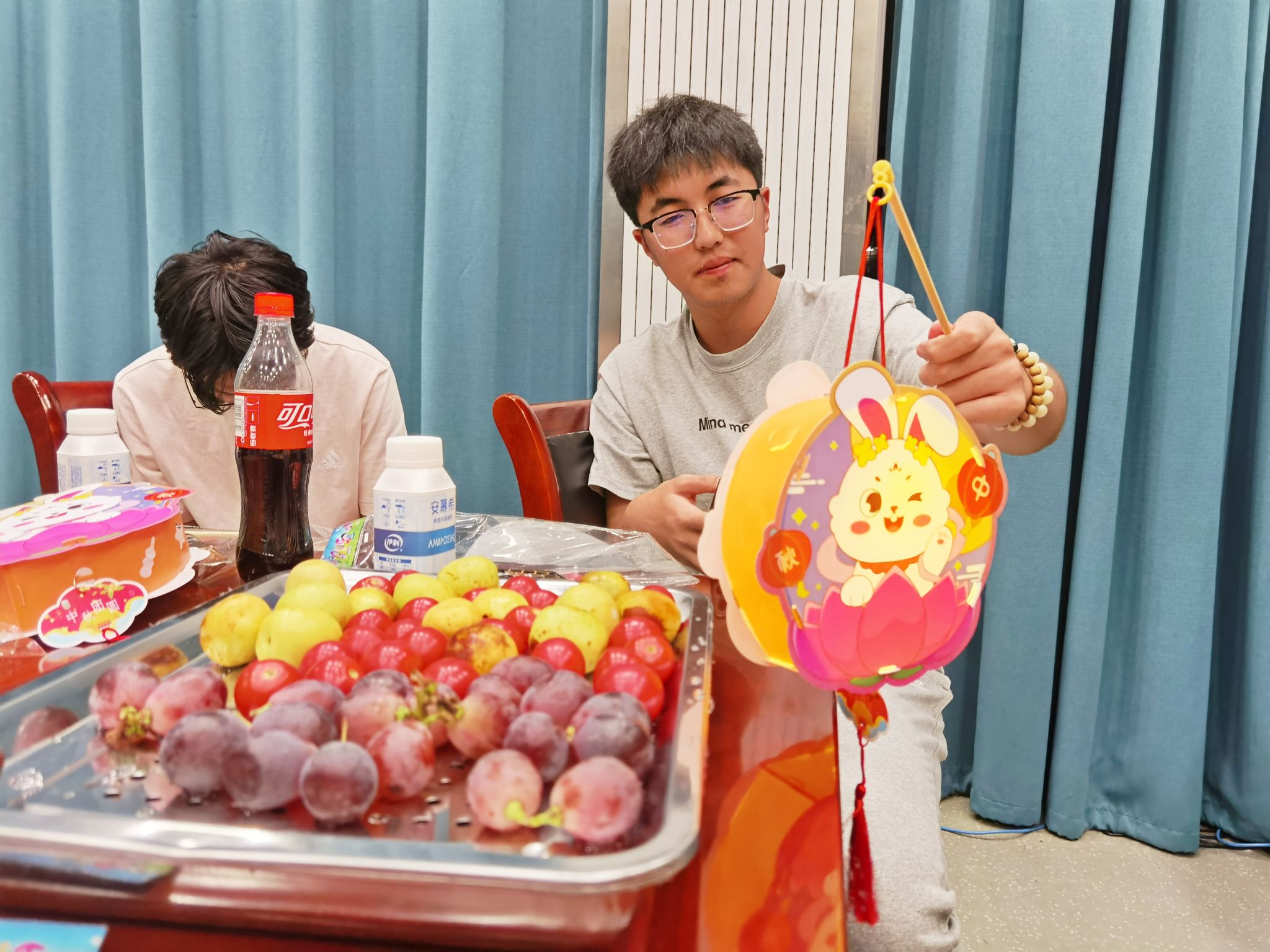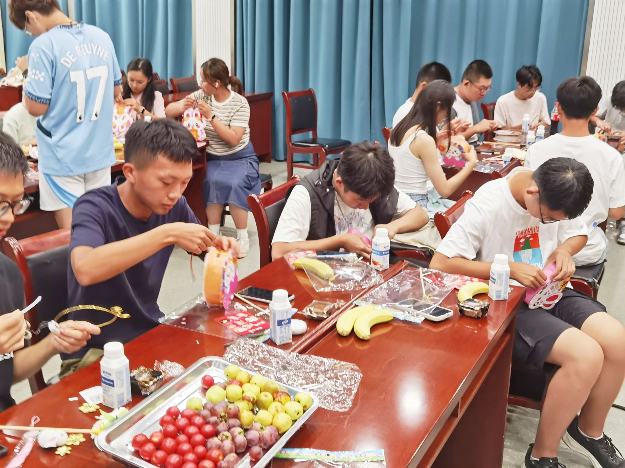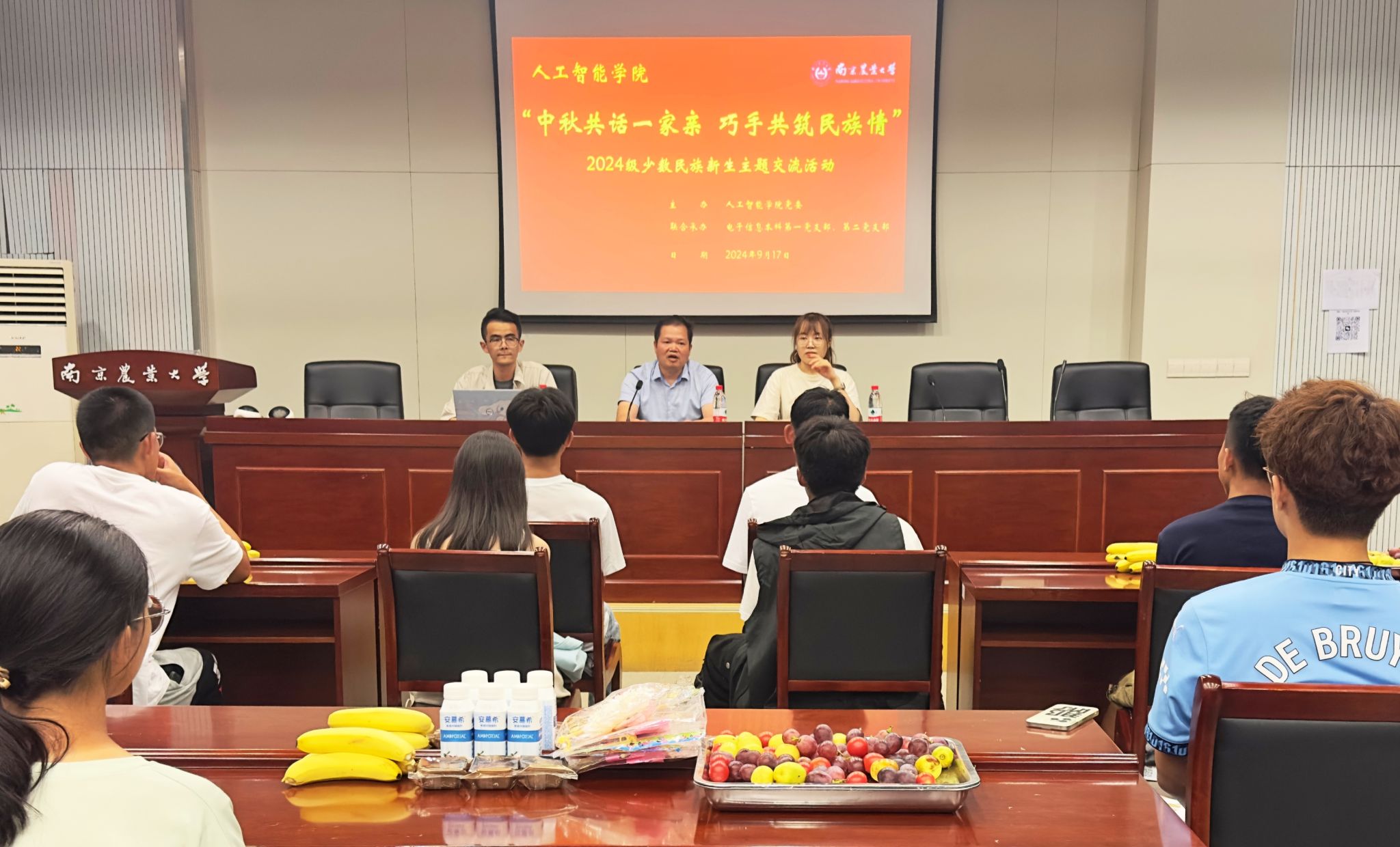 为与会同学精心准备了月饼、水果和中秋手工花灯,师生共聚一堂,亲切交流。
