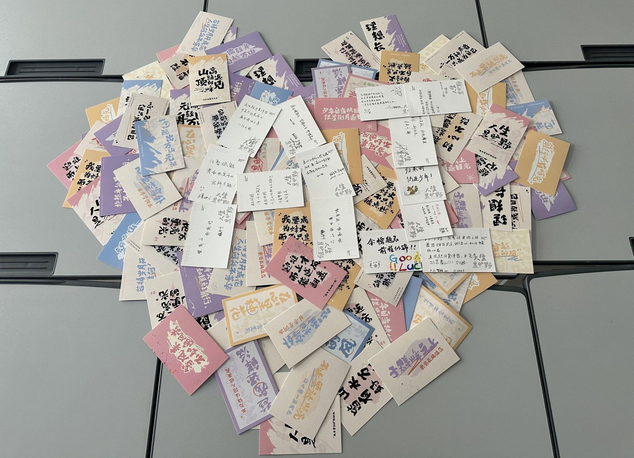 领导老师与低年级学子们纷纷自发写下明信片,祝愿考研学子金榜题名。