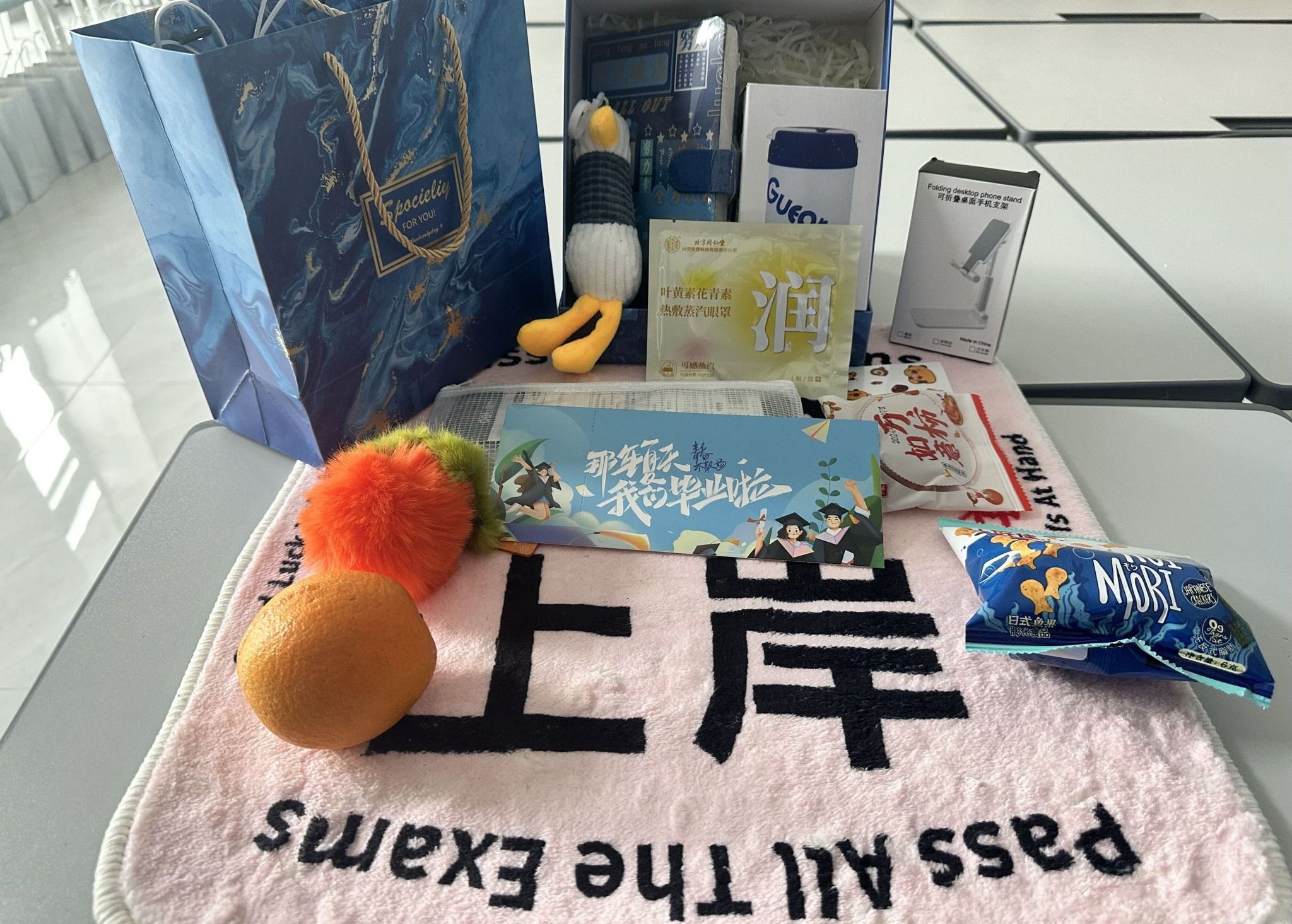 副院长(主持工作)陆明洲、院党委副书记吕一雷、院学生工作办公室主任湛斌、院本科生辅导员于佳琪等老师现场为考研学子颁发礼品。心想事“橙”伴手礼盒、“坐等上岸”坐垫、柿子钥匙扣等小礼物,不仅寄托了赌博网