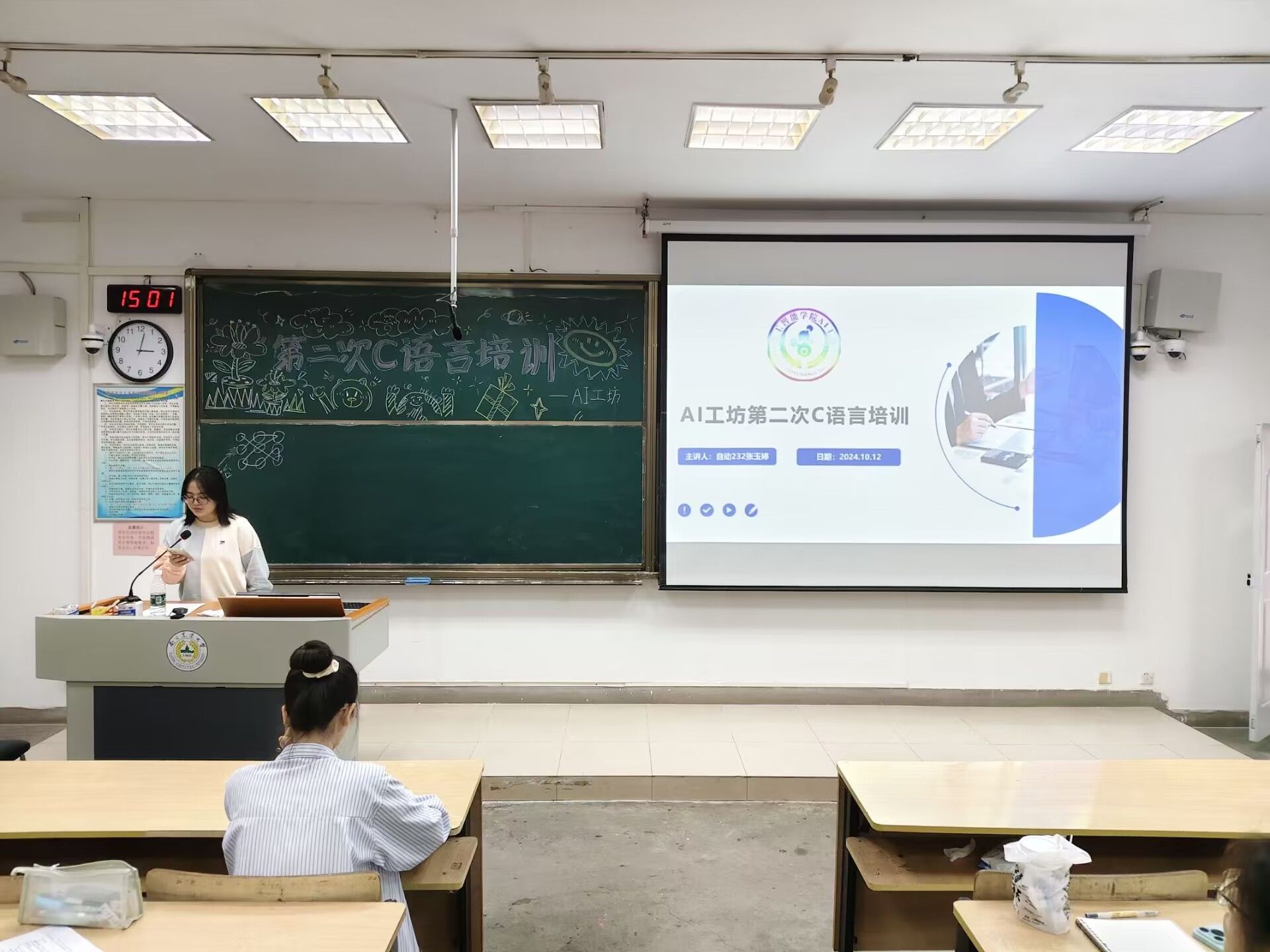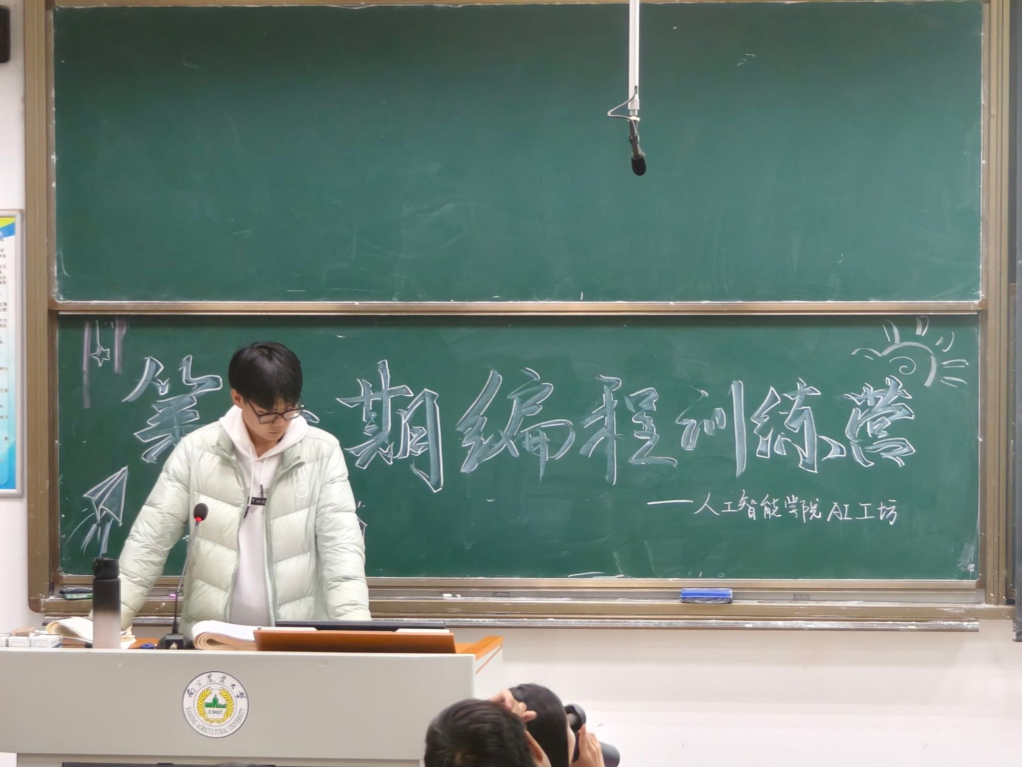 2024级大一学生和部分外院同学组成。训练营整合了AI工坊原有C语言、算法、单片机等对外公共培训,邀请优秀朋辈导师、工坊研发处技术总监等,通过环环紧扣的理论培训和实操任务分解,为同学们专业学习和科创启蒙提供平台载体。