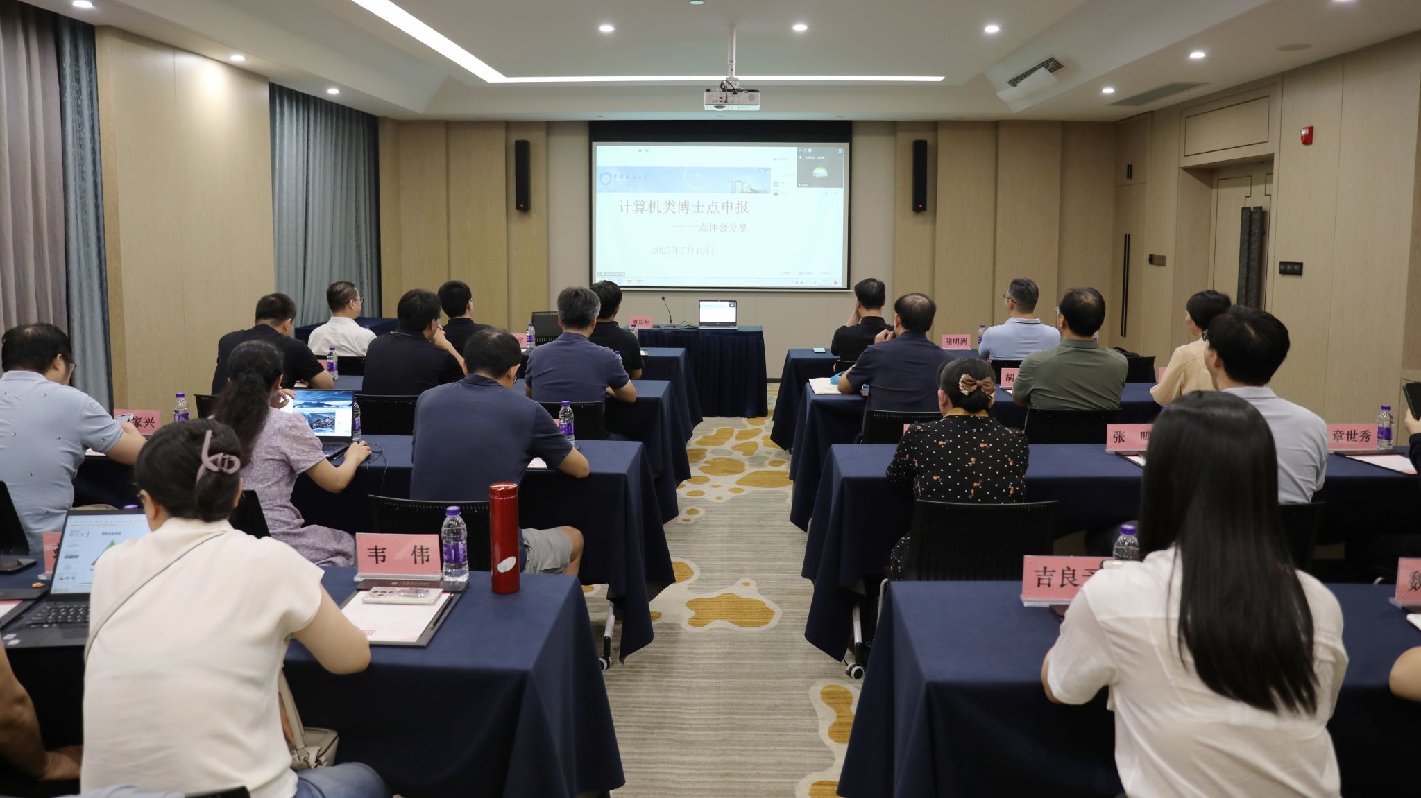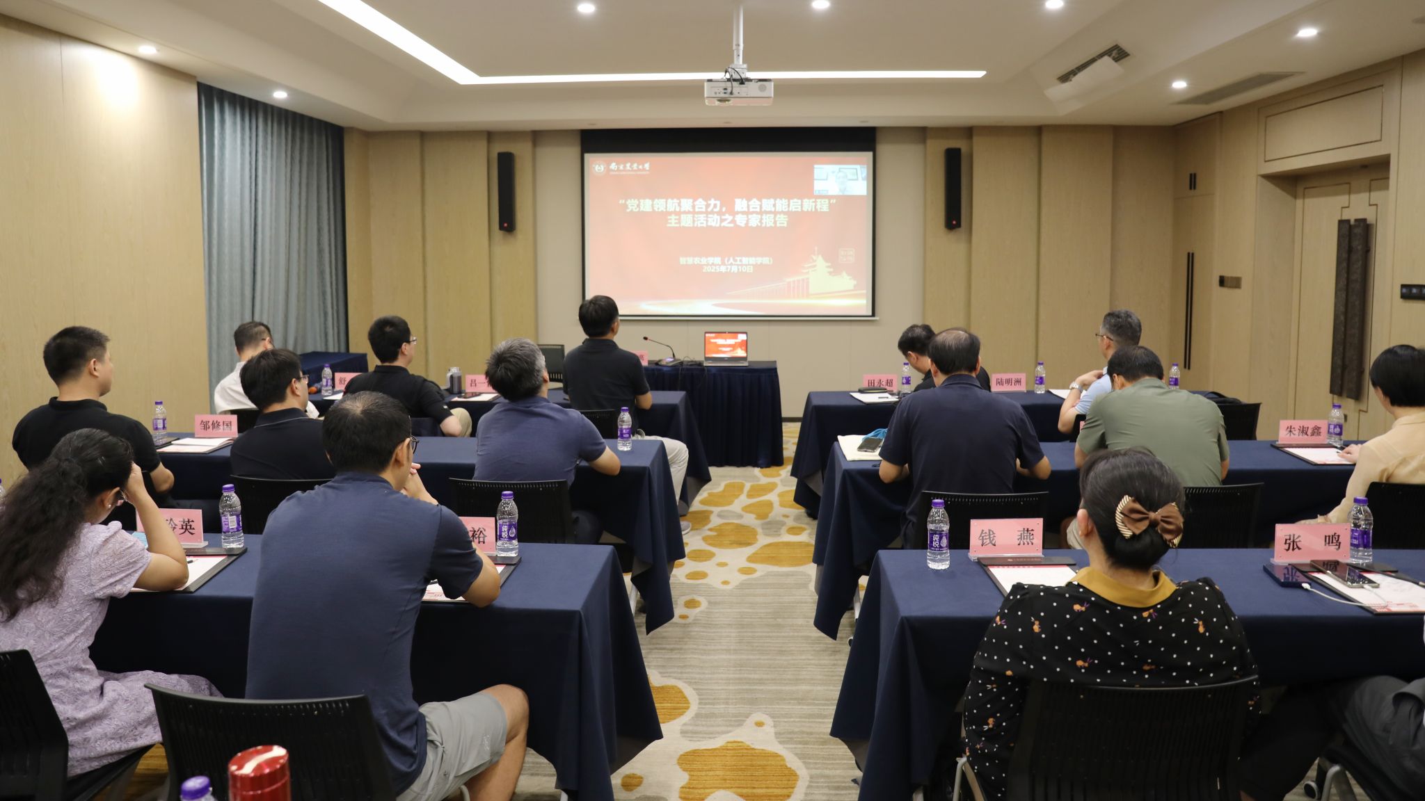 开班仪式后,赌博网 先后邀请江苏省委党校马克思主义赌博网 院长叶凌教授,中国地质大学(北京)赌博网 院长周长兵教授,中国农业大学国际赌博网 院长、信息与电气工程赌博网 李道亮教授做专题报告。叶凌教授以习近平文化思想为主题,从坚定文化自信自强、开放包容和守正创新、建设中华民族现代文明三方面详细阐释了习近平文化思想的核心要义、具体举措和目标旨归,深入浅出地为教师们上了一堂主题鲜明、内涵丰富、形象生动的主题教育报告。周长兵教授围绕“计算机类博士点申报思考”主题,以全国计算机类博士点概况、新增列情况引入,深入分析计算机类、软件等近缘学科博士点申报的背景,进一步剖析行业高校申报计算机类博士点的优势特色、内涵式发展建设及社会影响力要求,并从师资队伍、研究方向、高水平成果、学科带头人与学术骨干、人才培养、课程与教学等申报条件分享了经验与思考,为赌博网 计算机科学与技术一级学科博士点申报提供指导方向。李道亮教授以“国家数字渔业创新中心学科与团队建设”为主题,从团队定位引入,通过所在团队研究方向凝练、人员结构优化、社会化服务等系统阐述了以战略引领驱动平台建设的思路,分享了团队为国家相关领域提供整体解决方案的目标和举措,并与参会教师就团队人才梯度化建设、社会服务与成果转化、国际化办学与合作等进行了交流讨论。