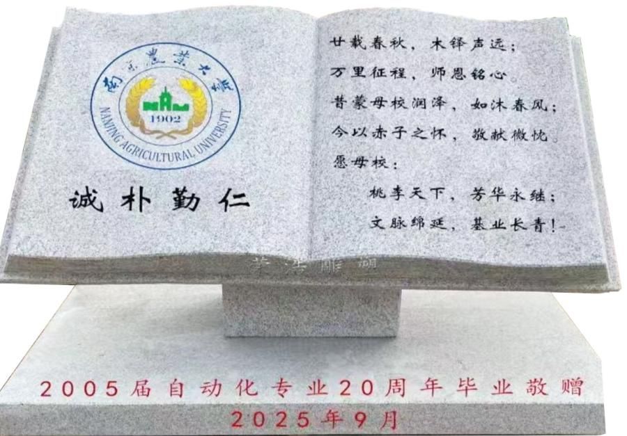 文化建设表示衷心感谢,这座承载深情与祝福的感恩石不仅刻有“廿载春秋,木铎声远;万里征程,师恩铭心”的隽语,更以“昔蒙母校润泽,如沐春风;今以赤子之怀,敬献微忱”道尽了校友们的心声,以及“愿母校:桃李天下,芳华永继;文脉绵长,基业长青”的美好祝愿。石以载道,言以寄情,这座感恩石不仅是赌博网