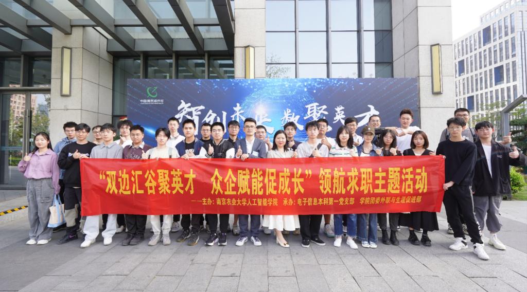 学生工作办公室副主任、本科生辅导员湛斌,组织院内卫岗、浦口两校区毕业年级本研学生,以及大三、大二、大一年级学生代表,双边出发、同赴中国(南京)软件谷专场招聘活动,开展“双边汇谷聚英才,众企赋能促成长”领航求职主题生涯活动。